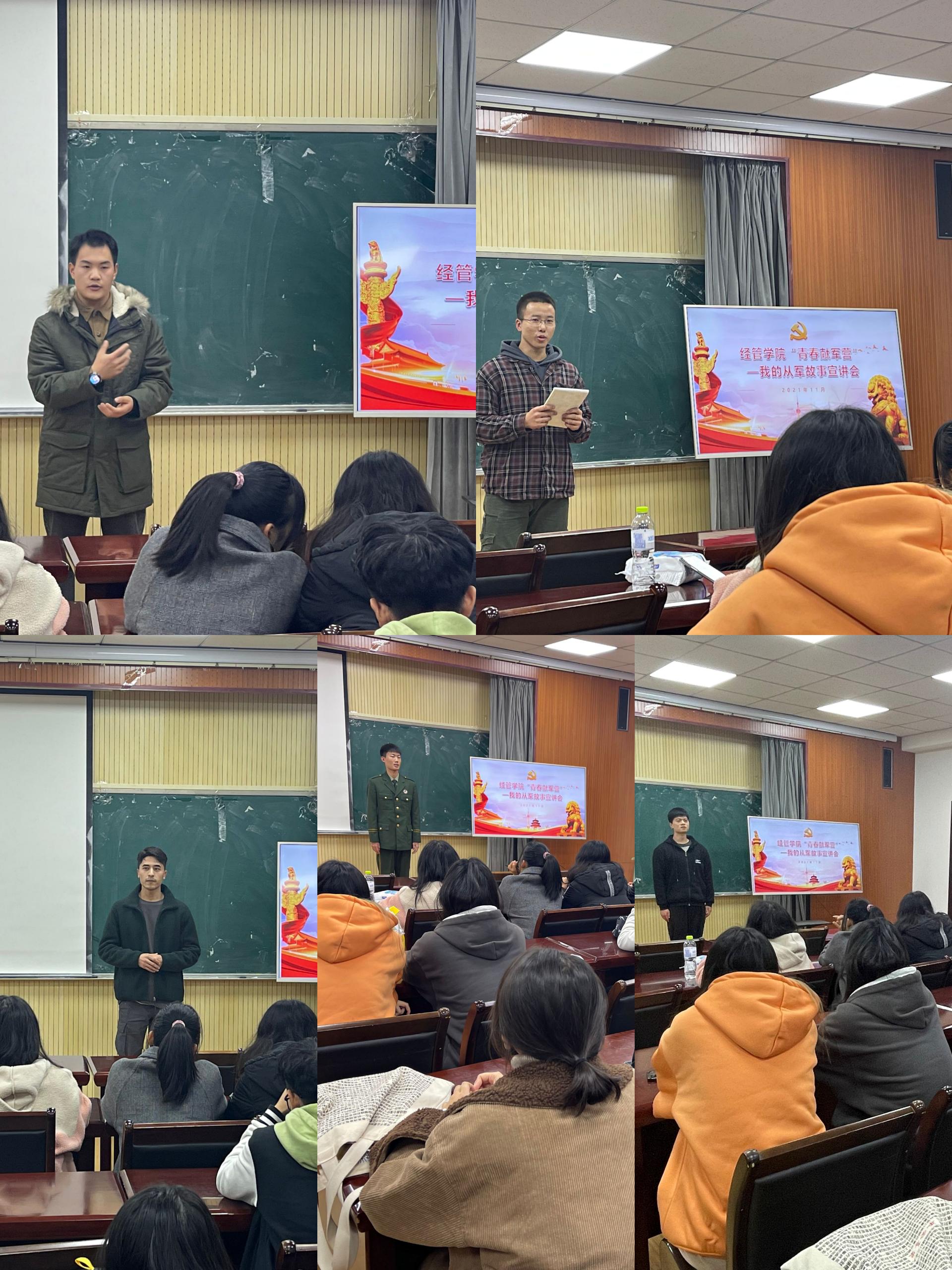 各年级、各专业具有参军意向的部分同学分享了自己从军的经历和感悟,号召同学们勇敢追逐青春梦想,用热血唱响新时代强军之歌,将爱国之心化为报国之行,积极投身军旅报效祖国。