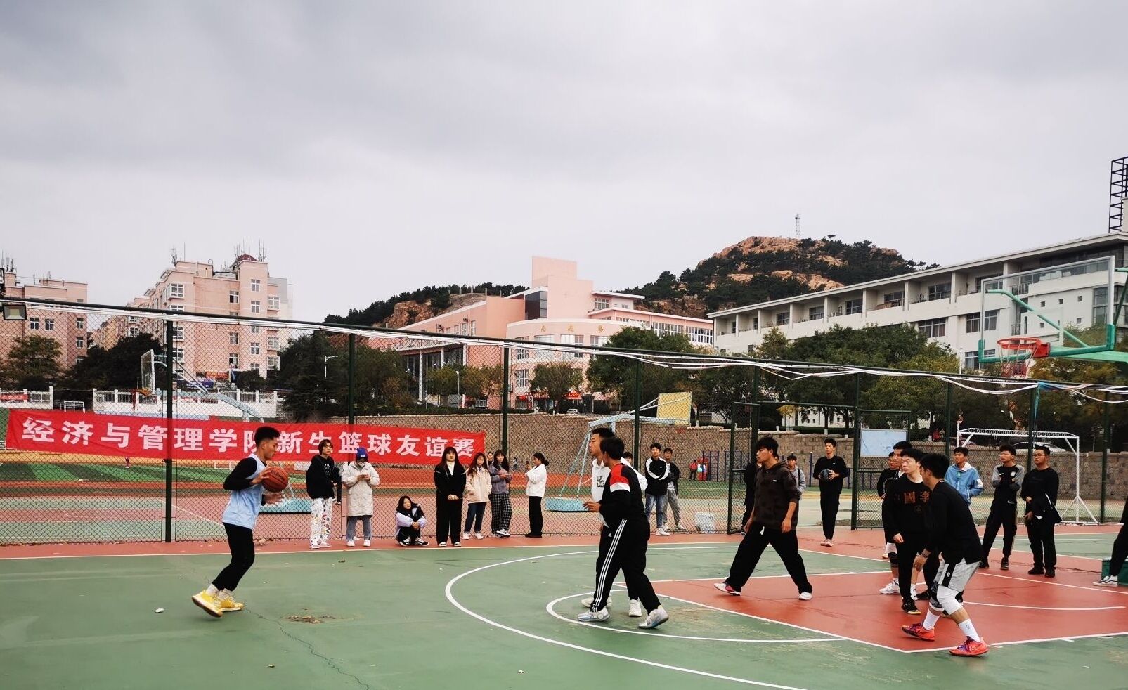 21级新生和高年级篮球爱好者组成,还邀请了经验丰富的体育学院同学裁决本场比赛,采用专业赛制。随着裁判哨音吹响,比赛正式开始。
