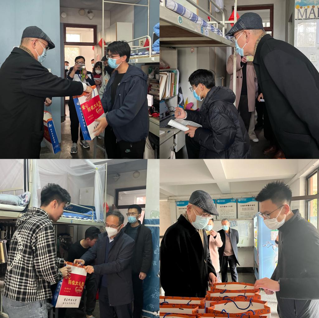 学生宿舍,实地了解线上听课及疫情防控相关工作,并为学子亲切送上“爱心防疫大礼包”。“网络顺不顺畅?线上课程进行效果如何?除了学习,生活如何安排?有没有进行身体锻炼?大家有什么困难?......”所到之处,陈校长亲切地询问学生的学习、生活、思想状况,叮嘱同学们要保证线上听课效果,注意保持良好的宿舍卫生,定期通风,同时注重劳逸结合,在保证学习的基础上加强体育锻炼,确保线上学习学有成效。陈克正校长详细查看“爱心防疫大礼包”所含物品,对学院细致暖心的疫情防控工作表示肯定。
