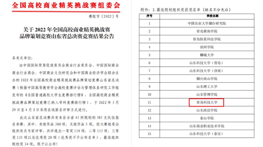 近日,2022年全国高校商业精英挑战赛品牌策划竞赛山东省总决赛落下帷幕。经管学院代表队共斩获省级一等奖3项、省级二等奖4项、省级三等奖6项,学校获评“最佳院校组织奖”。