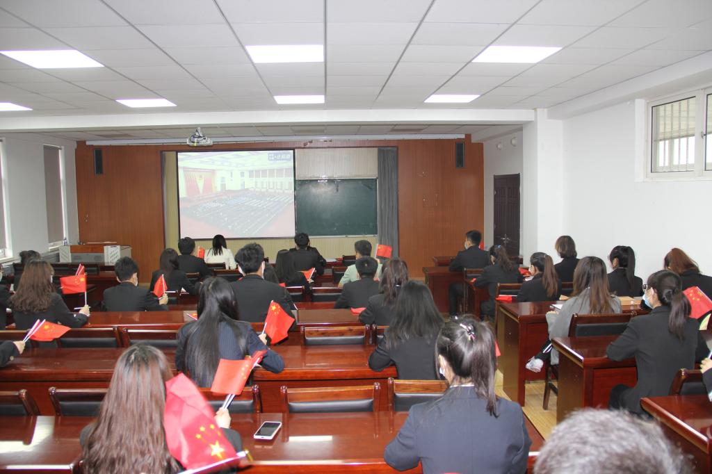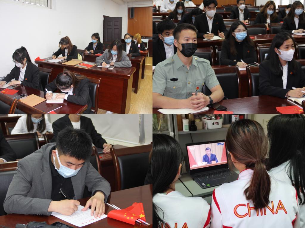组织全体青年学子以集中观看与自主学习的形式,多渠道收听收看庆祝建团100周年大会直播,并深入学习习近平总书记重要讲话精神。