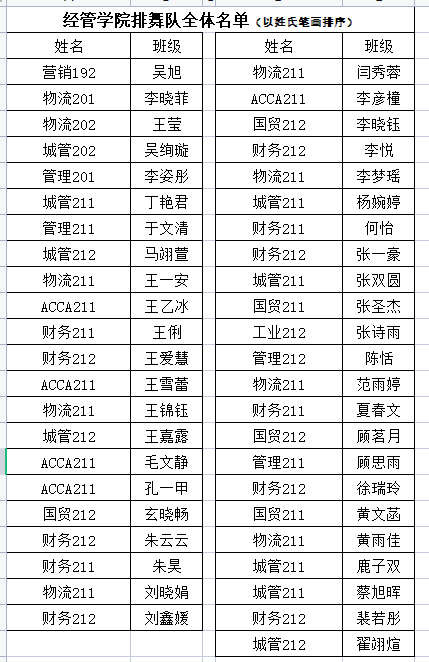 排舞队全体名单: