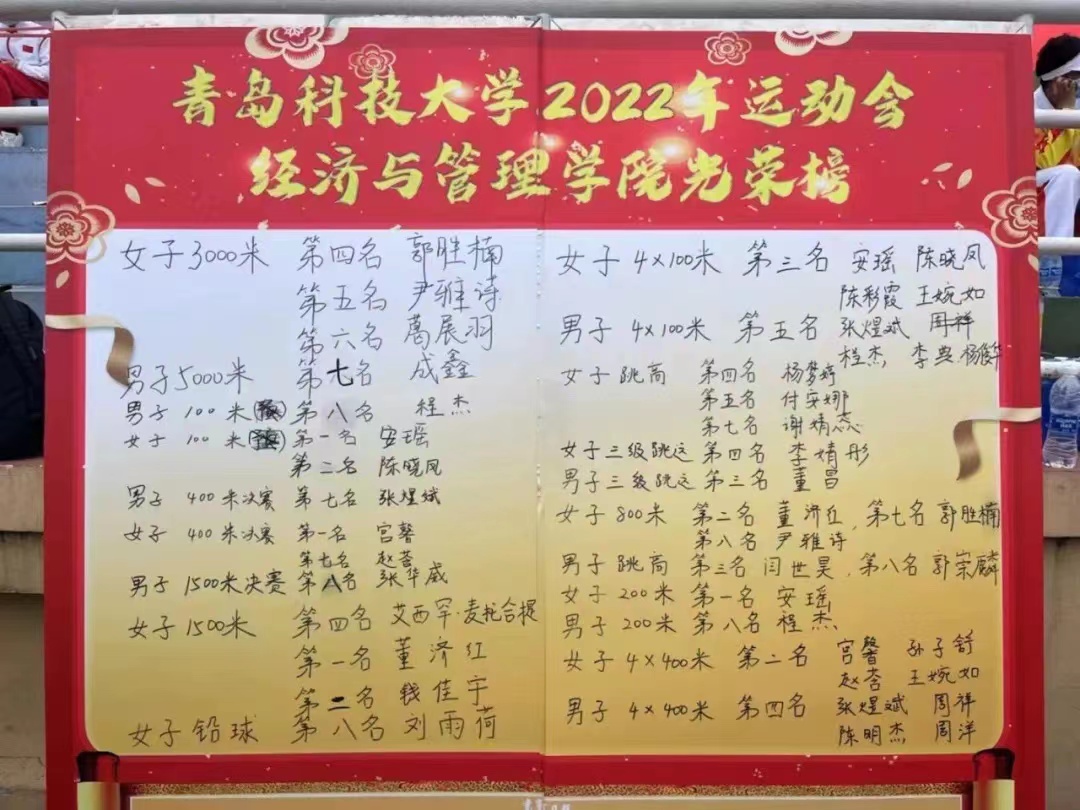 组织学子积极参与到运动会中来,检验学子勃勃风采,并喜获学生女子组团体总分第二名(崂山校区第一名)、精神文明奖等多项荣誉。