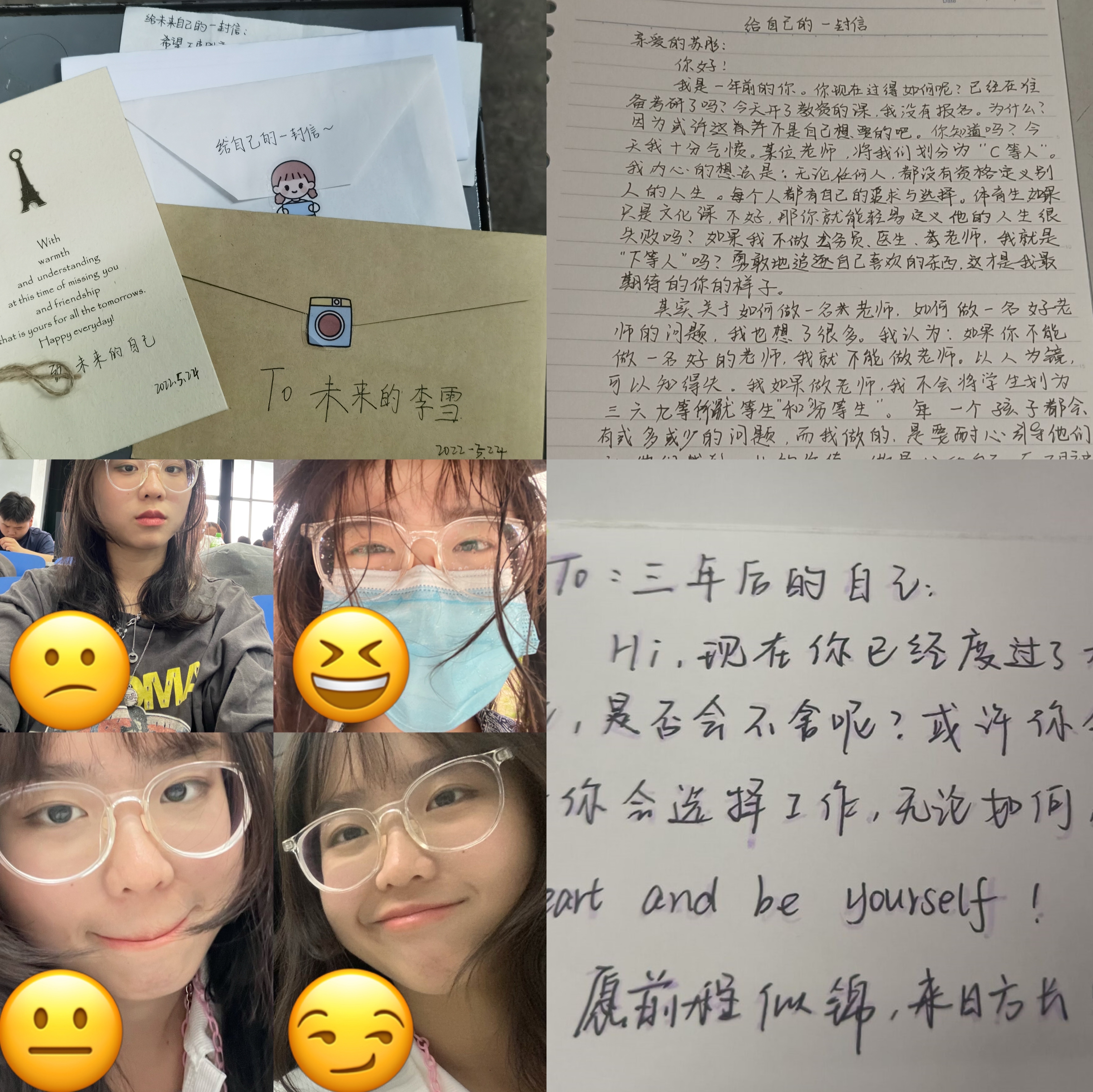 机遇与挑战,动力与压力,总是相伴而行。学会及时调整,方可于困境中发奋,在挑战中前行。学院组织特色活动“今天的emoji”,通过让同学们把自己一整天的心情变成一张整体的照片拼图,帮助同学们更好地发现自己情绪的波动,学会调控情绪,做自己情绪的主人。“送向未来的信”,以文字的形式与将来的自己好好对话,跟过去好好道别,激励自己着眼于当下,憧憬着未来,借“我爱我”之名,提醒自己珍惜生命、关爱自己,学会了解、关爱和悦纳自我。