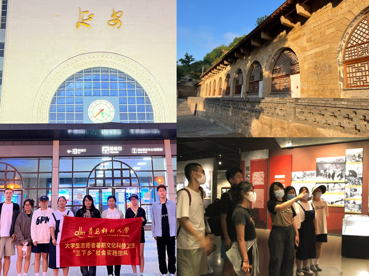 赴延安“时代印记”红色旅游经济调研团在实践中以行促思、艰苦奋斗,用脚步丈量祖国大地,学习时代精神。在前往延安的征途中或许一天一夜的火车太过难熬,或许沉重的行李拖累队员的步伐,或许漫漫征途充满着未知,但是实践团的每一位成员从未抱怨。团队途径了九曲万里沙、浪涛几颠自天涯的滚滚黄河,领略了“雨后复斜阳,关山阵阵苍”薄雾遮掩下的延安宝塔,感受到即使前路遥远但彼此支持的冰心玉壶情……最终于7月21日凌晨5点成功抵达延安实践基地,伴着晨光入住窑洞,将在学校体育综合改革中所练就的强健体魄以及不屈意志、在疫情防控中凝聚的团结精神融入到暑期“三下乡”社会实践中,让青春在奋斗中闪光。窑洞依山而建,见证着中国共产党由小到大、由弱变强、从低谷走向高峰,最终扭转了中国的乾坤。延安精神滋养了几代中国共产党人,从硝烟弥漫的峥嵘岁月到蓬勃发展的建设年代,从苍茫无际的黄土高原到生态宜居的绿色新城。居住在窑洞中,激励青年学子领略先辈风采,践行吃苦耐劳精神。