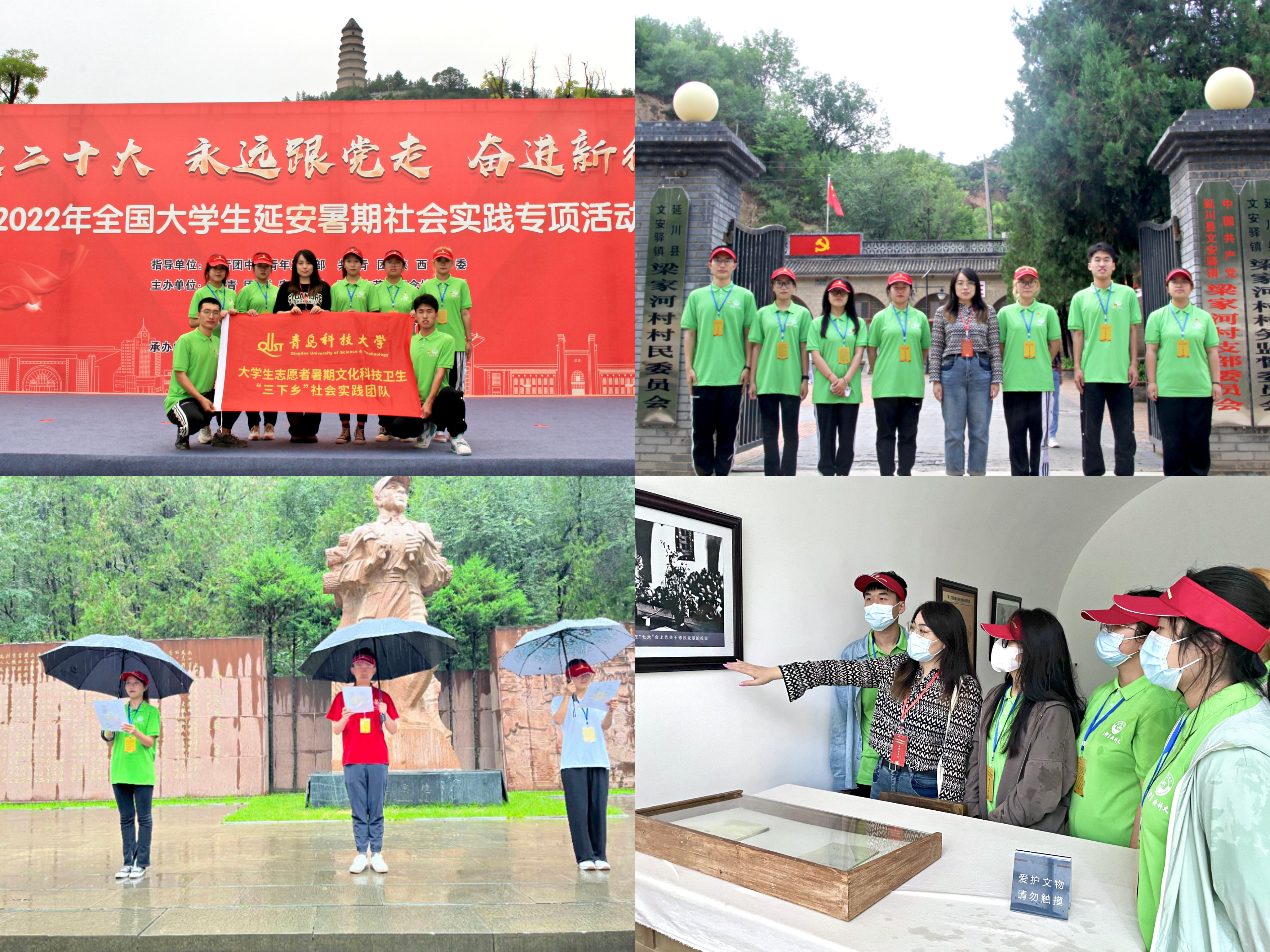 赴延安“时代印记”红色旅游经济调研团积极响应“喜迎二十大 永远跟党走 奋进新征程”2022年全国大学生延安暑期社会实践专项活动要求,按照学校通知要求组队出征前往延安,与全国各地兄弟院校共赴一场红色约定,顺利完成了为期10天的实践调研活动。
