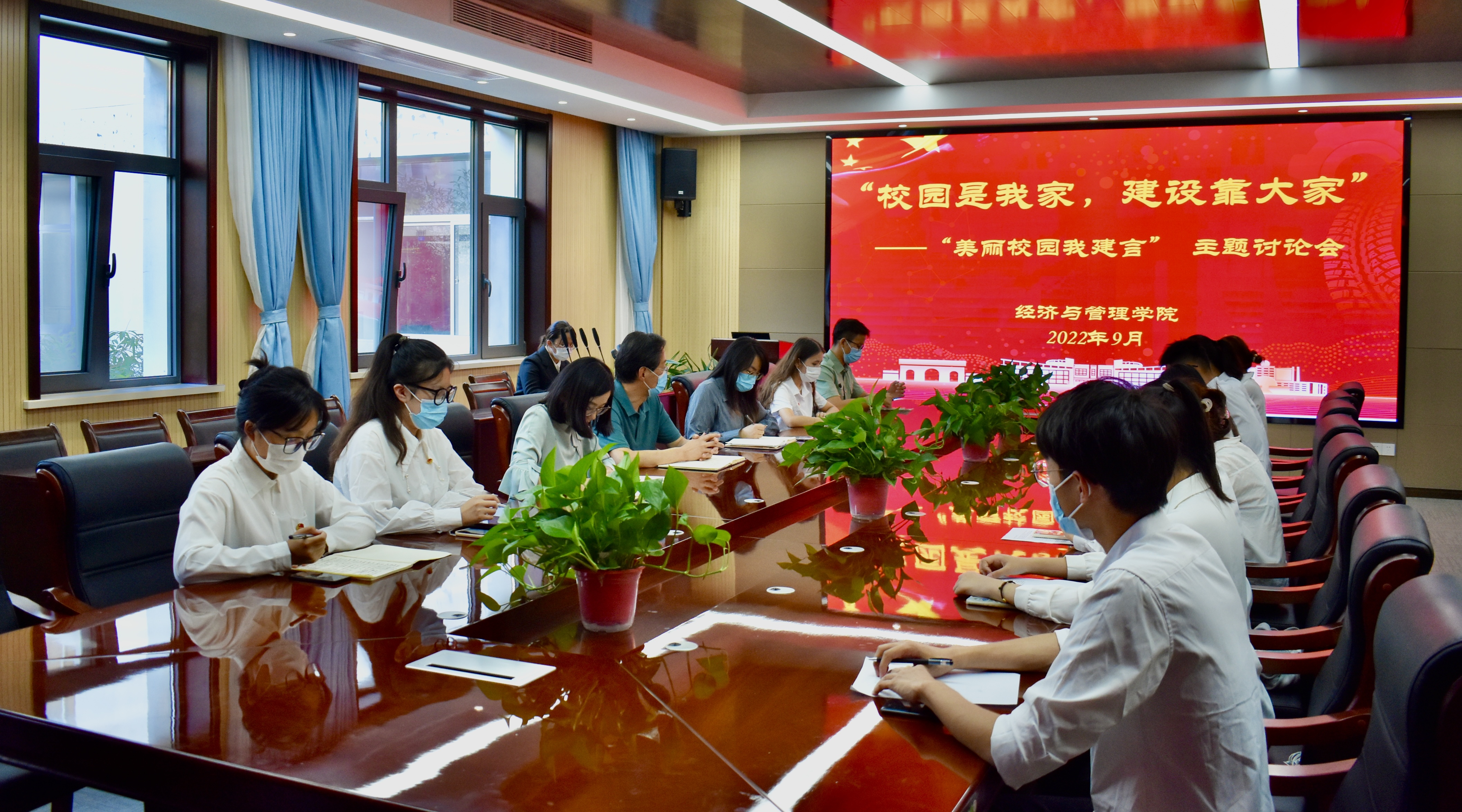 组织开展"校园是我家,建设靠大家"——"文明校园我建言"主题讨论会,在对学院本科生、研究生全面调研的基础上,组织包括中共党员、共青团员、群众、学生骨干、少数民族、退伍学生等学生代表参与会议,学院党委书记李德成出席会议。