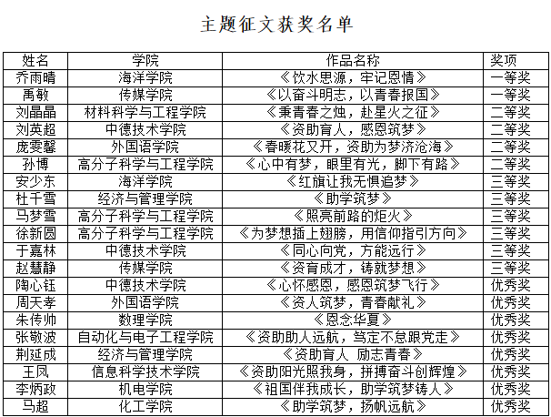 2022年资助育人系列主题征文与宣传作品获奖名单,我院报送的作品获得奖励2项。