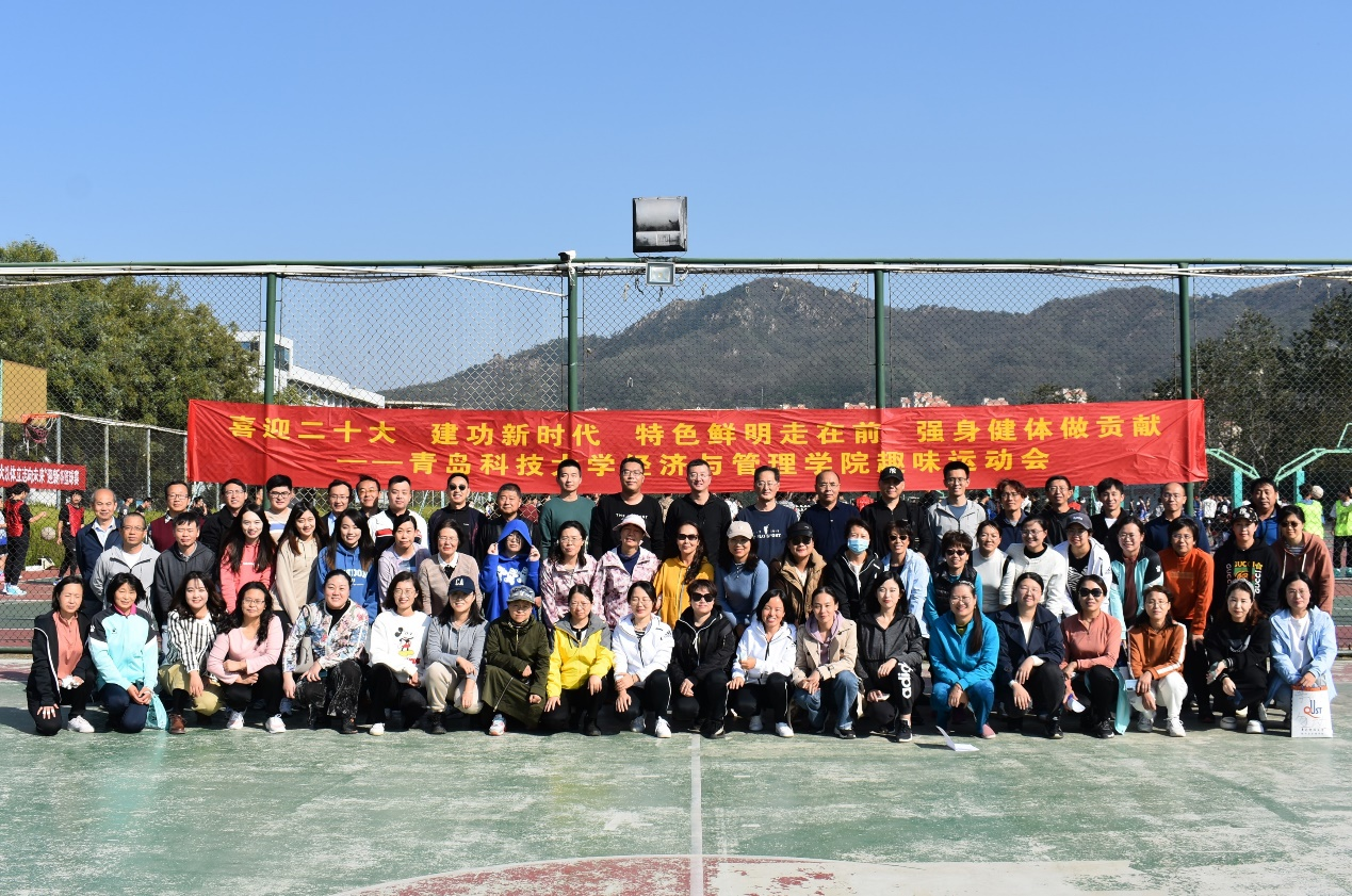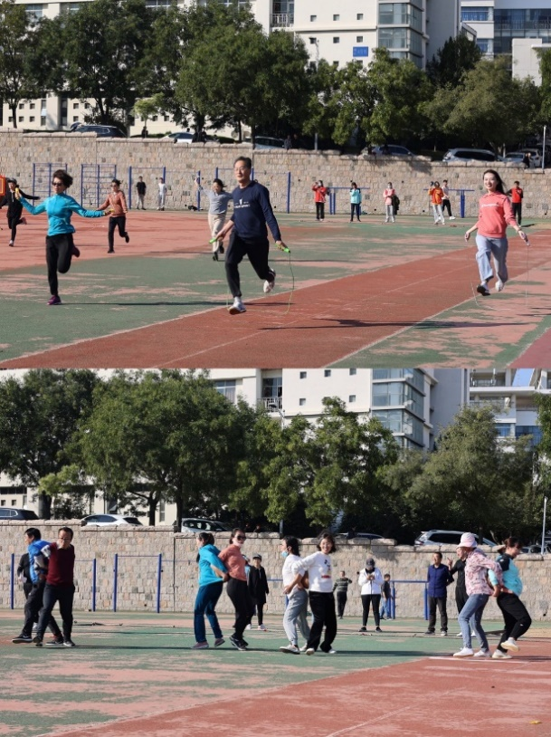 工会组织“喜迎二十大 建功新时代 特色鲜明走在前 强身健体做贡献”为主题的教职工趣味运动会在崂山校区运动场胜利召开。