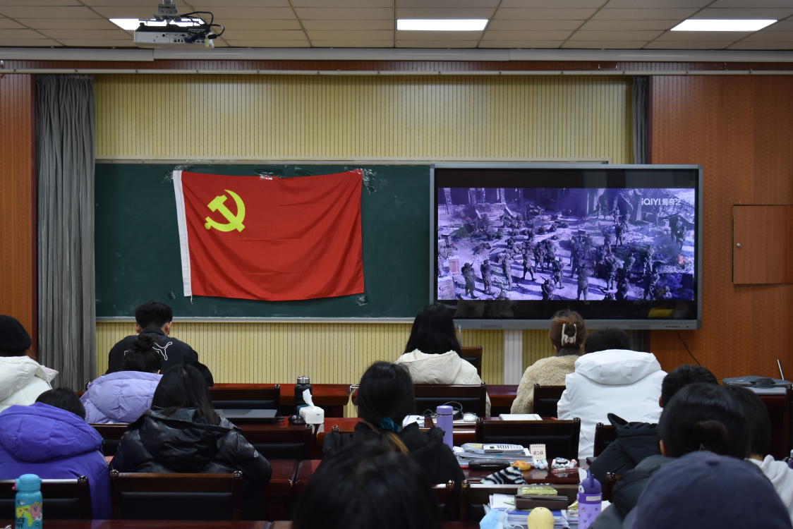 会议主要以红色观影和解读二十大报告两个主题展开。会议伊始,赵杰老师指出,认真学习宣传贯彻党的二十大精神是当前和今后一个时期的首要政治任务,对于动员经管学院党员干部和师生更加紧密地团结在以二十大精神周围,落实立德树人根本任务,加快学院高质量教育发展步伐,具有重大的现实意义,必须全面学习、全面把握、全面贯彻、全面落实。随后,读书班的同学们在老师的带领下观看红色电影,感受先烈们英勇奉献的爱国精神,从红色基因中汲取前进的力量,成长为能担当民族复兴大任的时代新人,同时也使同学们在忙碌的学习生活之余,通过观看电影来放松身心,舒缓焦虑。电影再现了战争年代将士们保家卫国、不怕流血牺牲的革命精神。引导学生将先辈卓越的品质与精神迁移到当下疫情防控阻击战中,众志成城,努力奋斗。电影结束后,同学们结合感悟体会上台分享二十大报告解读,共同领会党立党为公,执政为民的执政理念,深刻体会党的二十大精神。活动结束后,读书班同学纷纷表示要切实落实对党的二十大的学习,坚定信心、扎实肯干、学深悟透,持续推动学习党的二十大精神往深里走、往心里走、往实里走。
