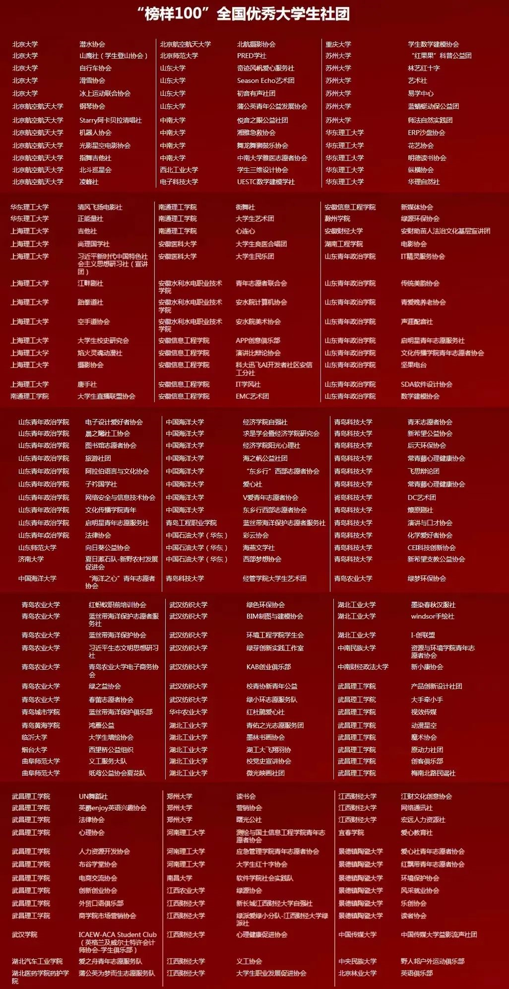 12月14日,中国大学生知行计划公布2022年“榜样100”全国优秀大学生社团榜单,成人直播平台
