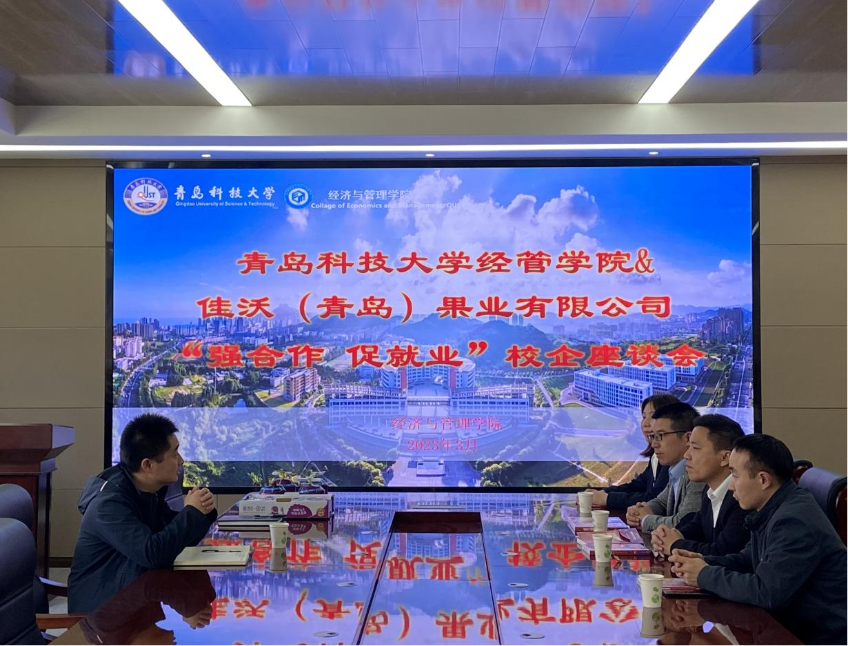 于经管楼313会议室举办“强合作 促就业”校企座谈会,佳沃(青岛)果业有限公司华北大区人力资源经理客纪维、山东区域经理杨闯一行4人来校交流,探讨人才招聘、实习实践等相关事宜。成人直播平台