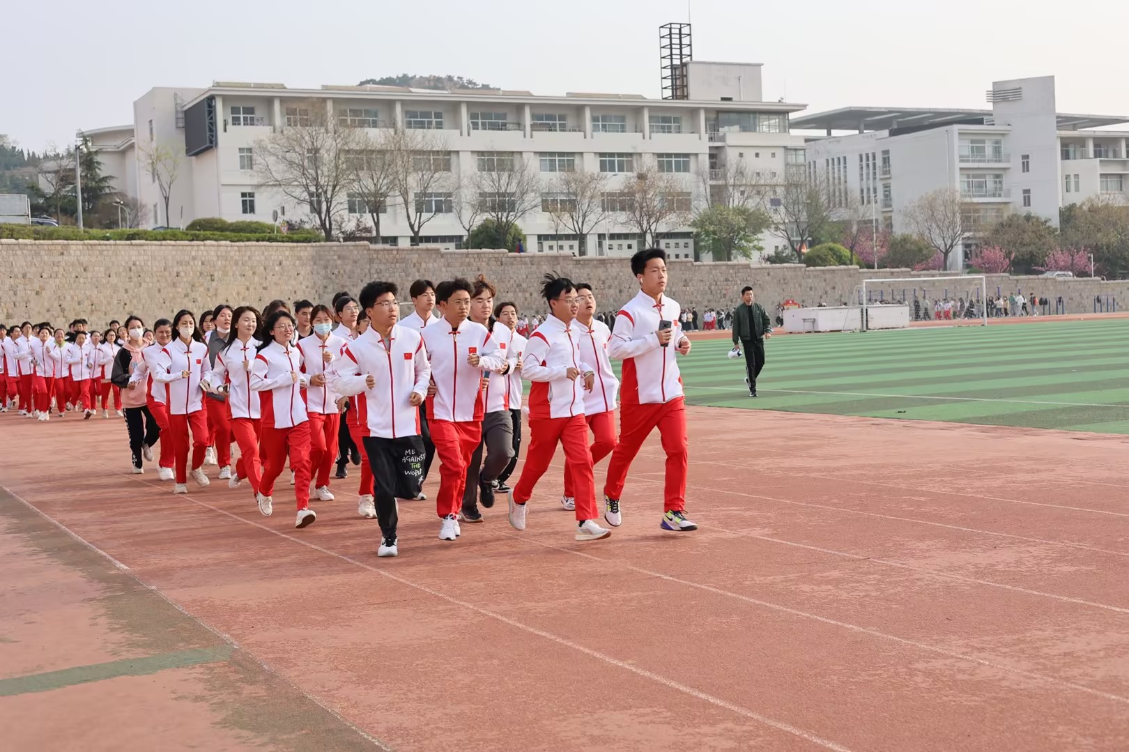 深入落实学校体育综合育人总体要求,推进“有组织地体育”,抓实“三全育人”的重要举措,晨跑活动覆盖2021、2022级全体学生和高年级学生体育骨干,将按照“一天一练”的频率全年推进。晨跑活动每天邀请联系班级处级干部、班主任、辅导员参加,通过微思政、微团课、晨跑谈话等形式深入挖掘体育中的“五育”要素,凝练以体育人的“个十百千万”工程,充分发挥“以体带全”的功能,实现体育教育增值,为学生健康、阳光、文明、向上的出彩人生夯实基础。