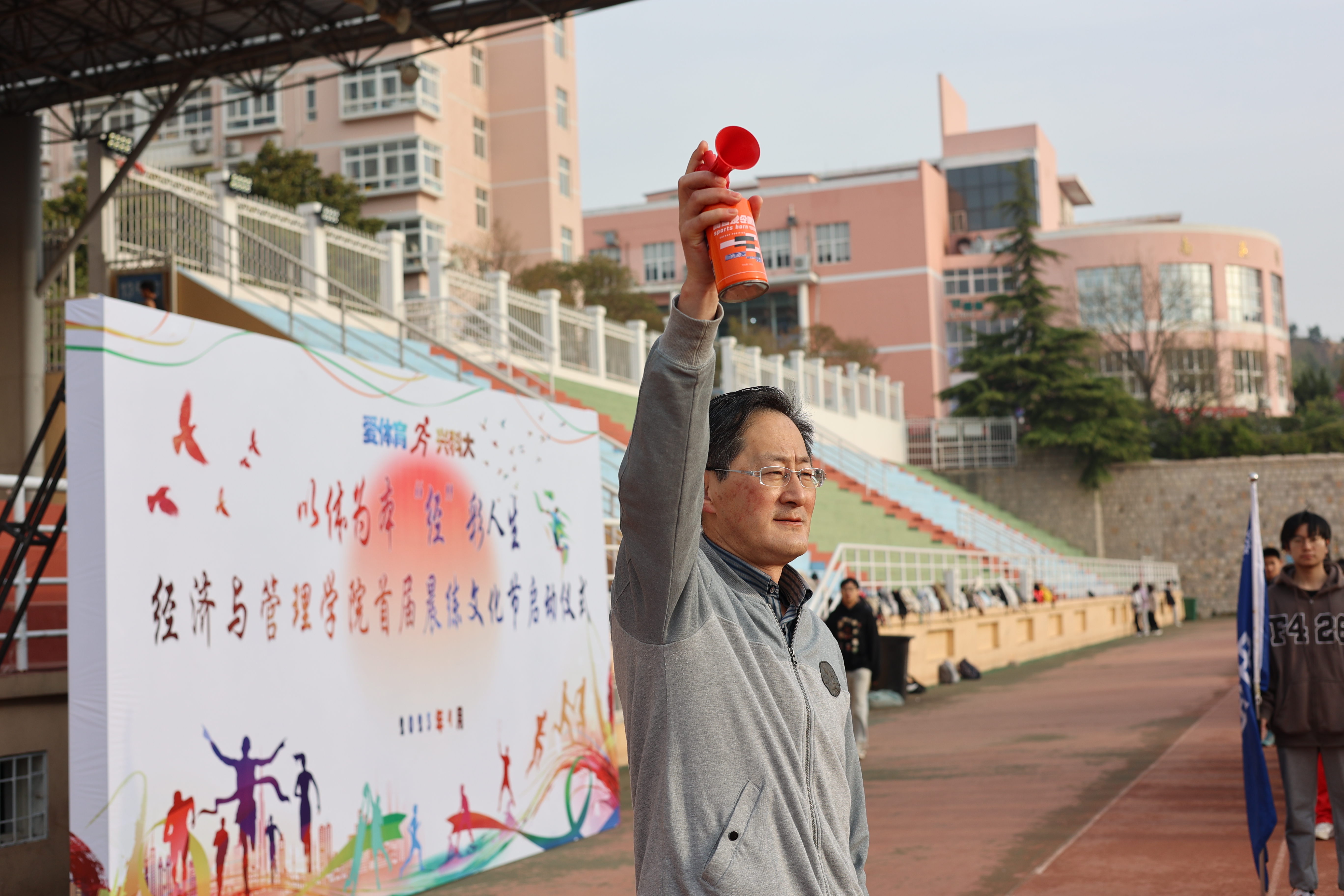 “以体为本 ‘经’彩人生”首届晨练文化节在崂山校区田径场举行,学校体育综合改革领导小组办公室常务副主任楚晓东、学生工作部副部长曹永俊、校团委副书记陈兵、党委校长办公室副主任步德胜、王帅、党委巡察工作办公室副主任张玉出席启动仪式,仪式由成人直播平台