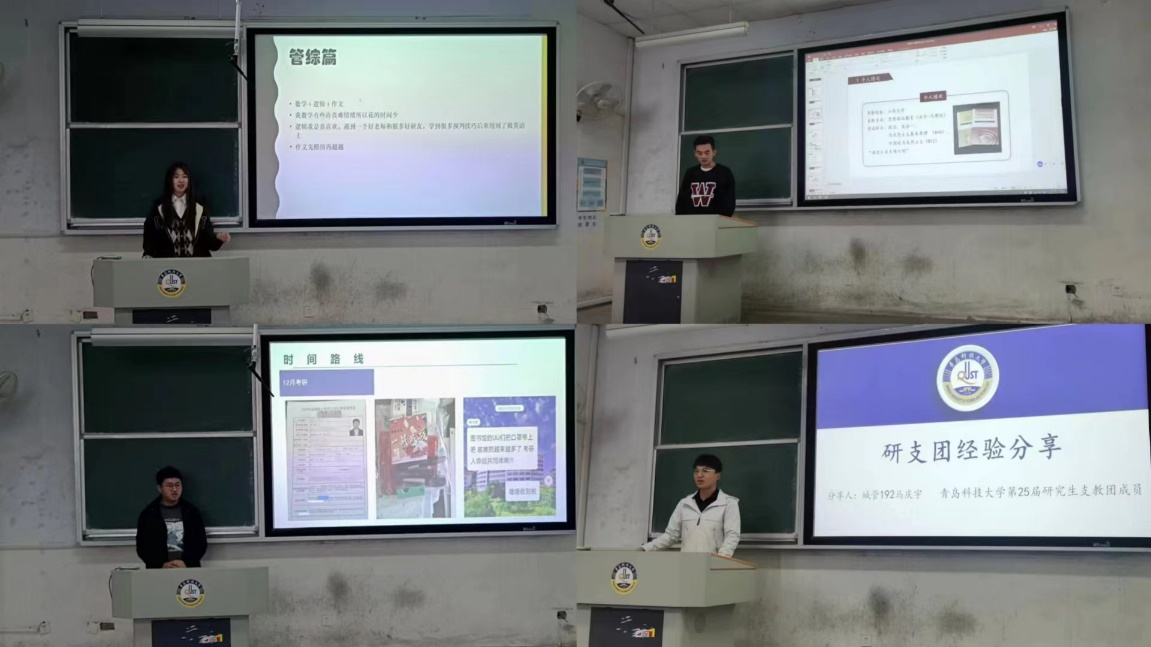 其他4位同学,依次分享了考研、考公、研究生支教团、就业等方面的经验,并对同学们提出的问题耐心地答疑解惑,现场气氛热烈。