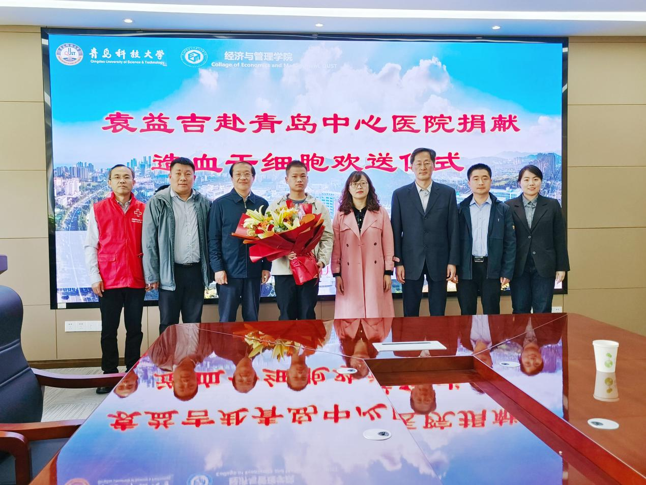 4月19日上午,学校与崂山区红十字会举办崂山区第18例造血干细胞捐献志愿者袁益吉赴青岛中心医院捐献欢送仪式。党委学生工作处处长王丽、经济与管理学院党委书记李德成、经济与管理学院党委副书记牛宝卫、经济与管理成人直播平台