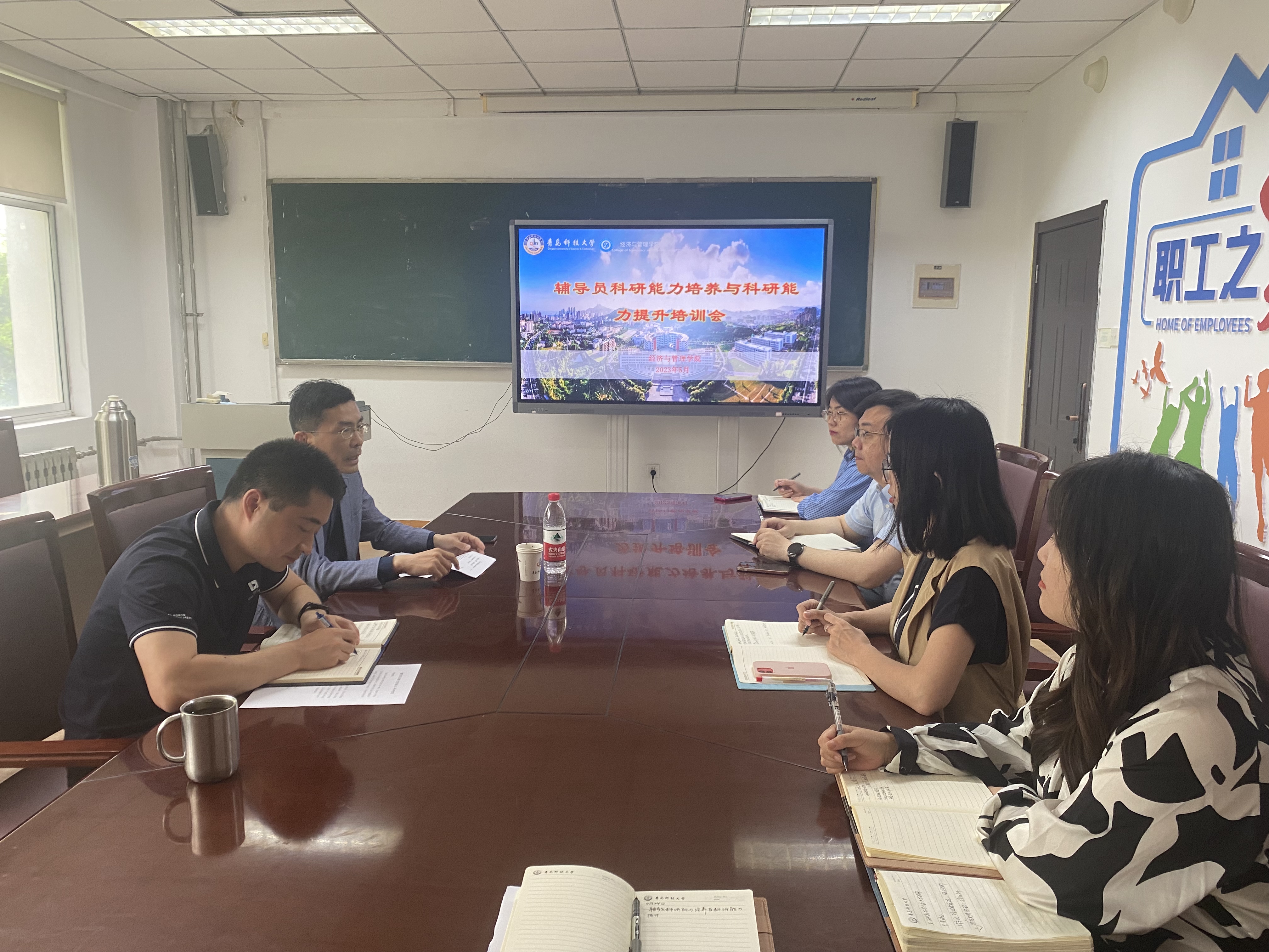 在经管楼415会议室组织开展“辅导员科研能力培养与科研能力提升”专题培训会。培训会邀请机电工程学院党委副书记肖强主讲,学院党委副书记牛宝卫主持会议,全体辅导员参与培训会。