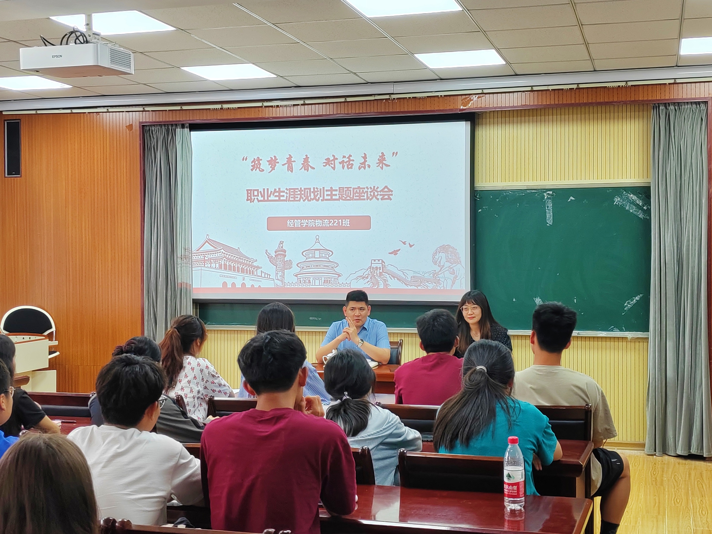 组织开展“青春筑梦 对话未来”职业生涯规划主题座谈会。联系干部党委(校长)办公室副主任王帅来到物流221班,与同学们面对面沟通交流。座谈会由22级辅导员赵杰主持。
