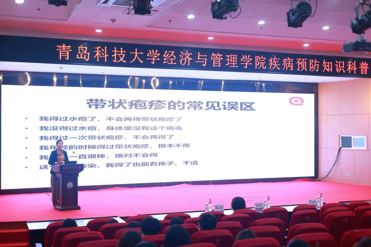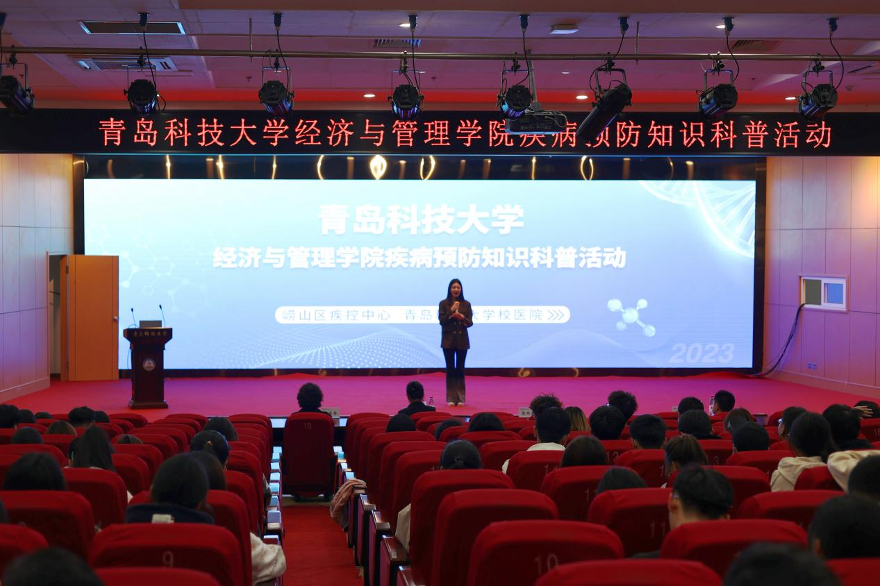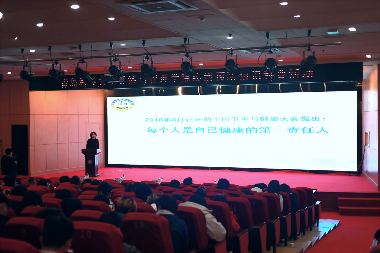于第三报告厅组织开展学生健康知识讲座。崂山区疾控中心免疫规划科科长李雪丹、后勤管理处正处级组织员兼校医院院长范而军、校医院副院长高术华、成人直播平台