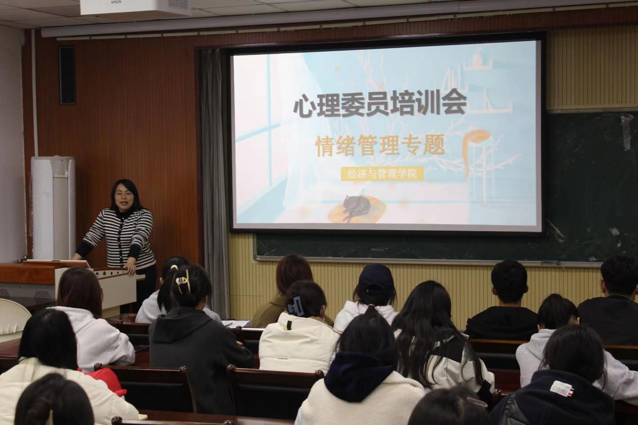 于经管楼419室成功举办情绪管理专题培训会,此次培训会由学院心理工作站站长付凯主讲,本硕大一、大二班级心理委员、院学生会权益部全体成员积极参与此次专题学习。
