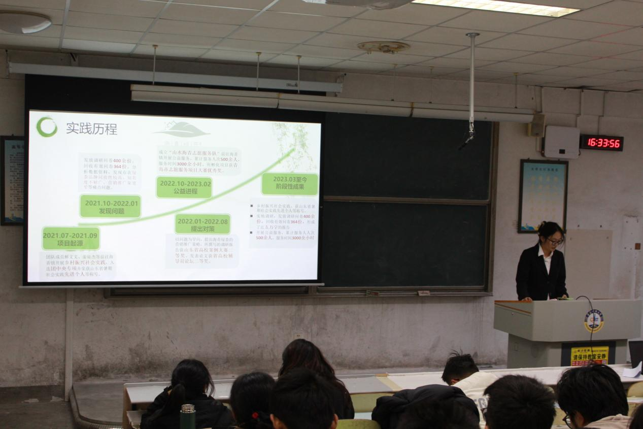 陈彩霞就自己的品牌策划赛的参赛项目,进行现场路演,为同学们真实还原了答辩现场,对竞赛答辩有了更加深刻的感受。
