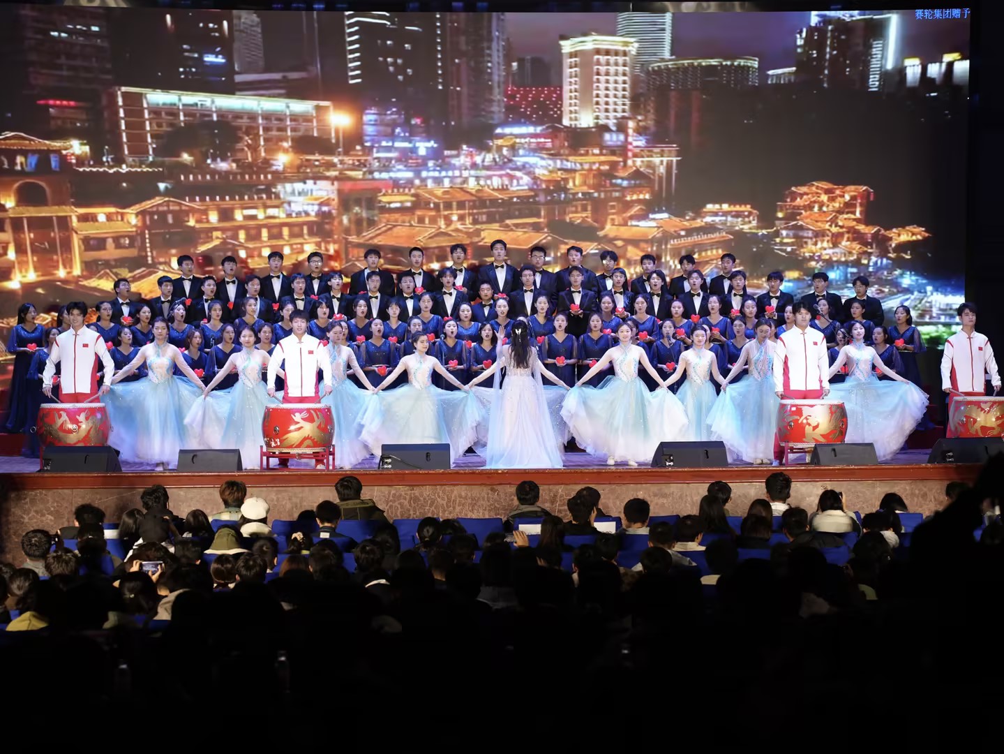 根据校团委相关要求,学院团委精心部署、快速落实,于11月初组建合唱团,备赛时长33天,累计排练次数23次,共计80多个小时。比赛过程中,经管学子以青春朝气演绎出万家灯火、阖家欢乐的美丽中国景象,通过朗诵、舞蹈、鼓点等多种表演形式,向观众展示“青春婀娜”的华夏盛世;通过艺术之美,让青年学子身临其境感受广阔的家国情怀和步入时代新征程的壮志豪情,向广大青年传递“强国有我”的信念担当。