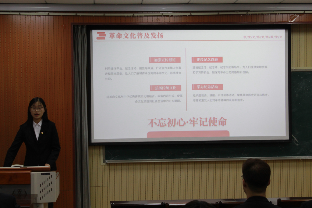 随后,润心宣讲团代表张春柳以《红色基因融入血脉,革命文化薪火相传》为题,为大家进行了深入讲解。她表示,红色基因是我国革命文化的基石,团员们要将红色基因融入血脉,继承和发扬革命先烈的崇高精神,让革命文化薪火相传。