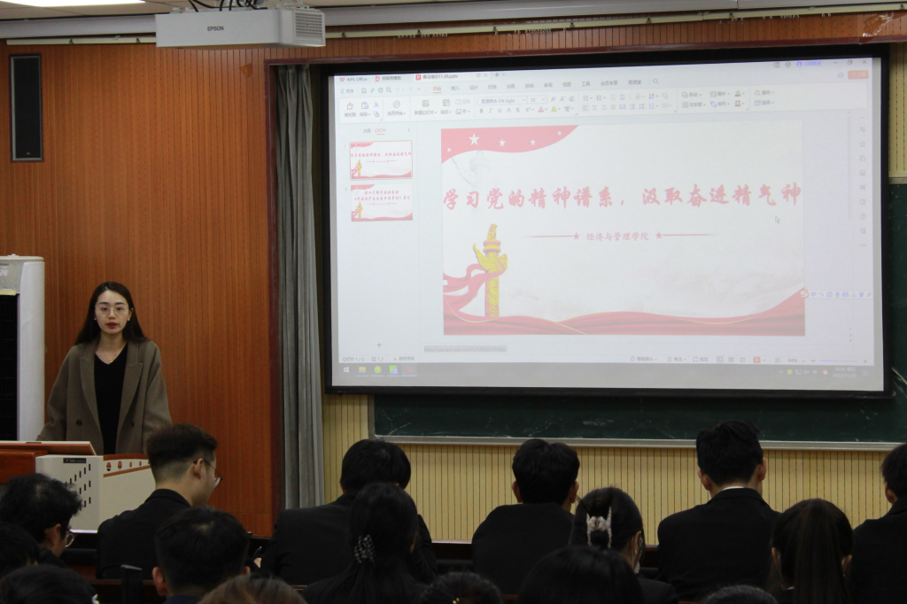 于经管楼419组织开展第四期主题团课学习。本次团课由辅导员占晓祎老师主持,全体团员和入团积极分子参加此次团课。