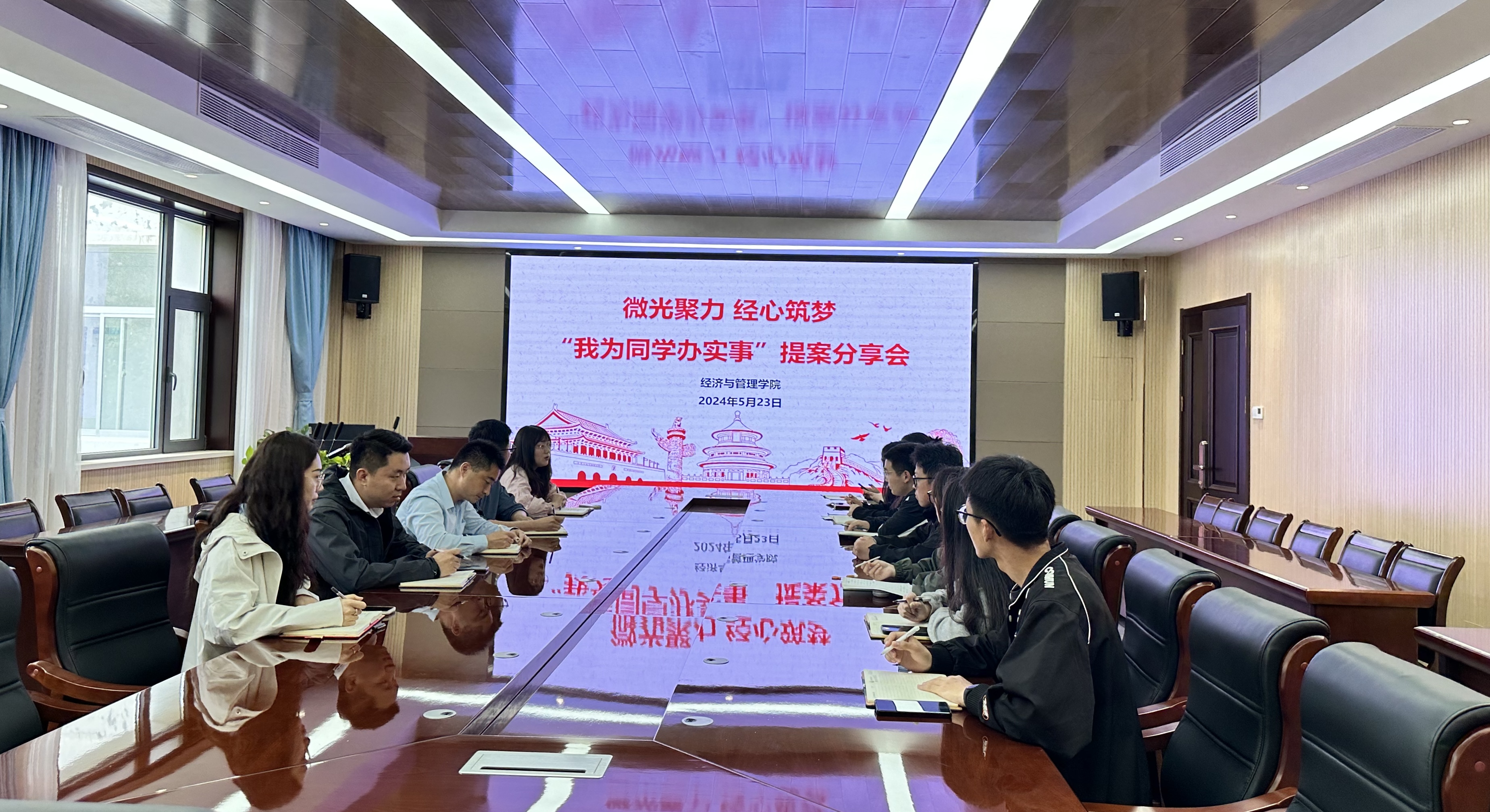 学生会在经管楼313会议室召开“微光聚力 经心筑梦:我为同学办实事”提案分享会。学院党委副书记兼副院长牛宝卫,团委书记付继航,各年级辅导员及学生会各部门负责人出席会议。