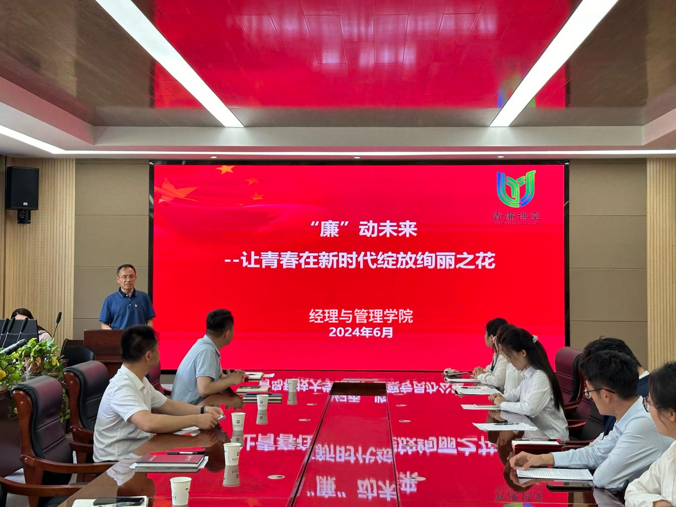 最后,李勋来为毕业生党员讲授党纪学习教育专题党课《“廉”动未来——让青春在新时代绽放绚丽之花》。他从“深刻把握当代青年扣好廉洁从业“第一粒扣子”的意义和重要性”“自觉遵守党的纪律和国家法律法规,以及立志涵养‘三气’”“努力成为可堪大用能担重任的新时代青年”三个方面,深入浅出地阐释了青年学生为什么要学党纪、如何做到遵守党纪,以及如何成为可堪大用能担重任的新时代青年,为中国式现代化贡献当代青年的青春和力量,给大家以深刻的启发。