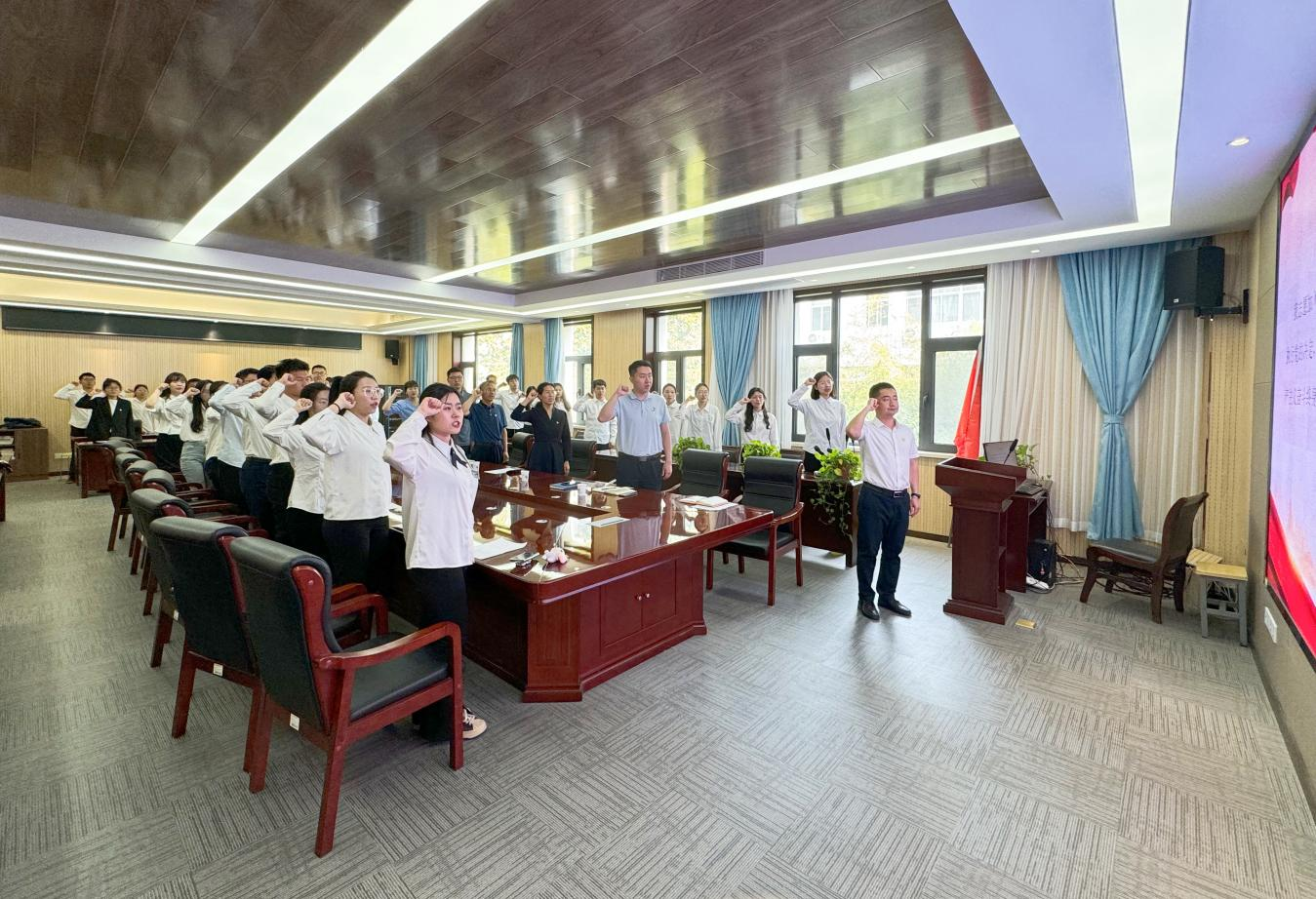 牛宝卫带领全体党员重温入党誓词,在诤诤誓词中坚定政治信仰,增强政治自信,时时刻刻牢记共产党员的政治责任和历史使命,永葆忠于党、忠于国家、忠于人民的政治本色。