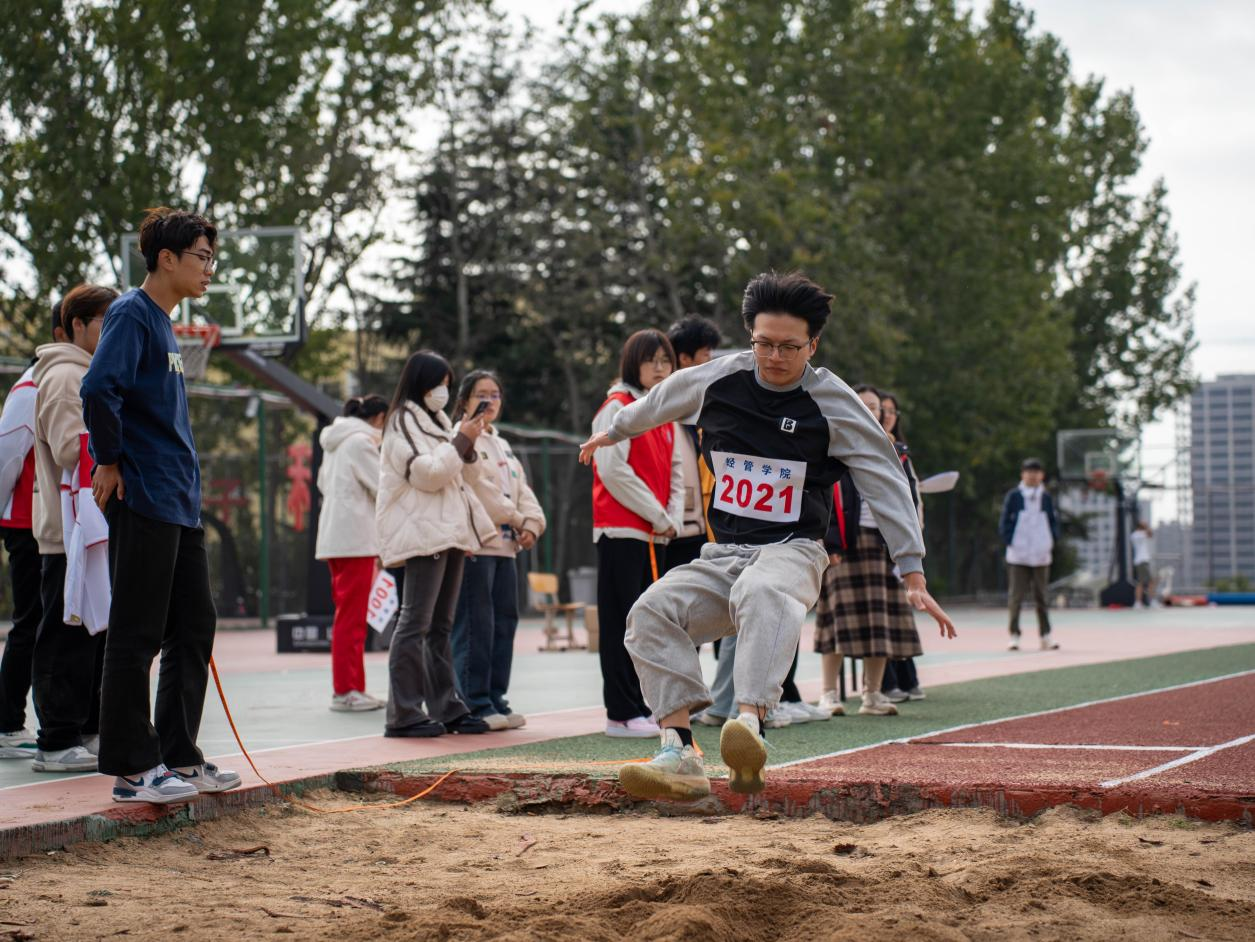 鸣笛完毕,运动会正式开始。短跑赛道上,运动员们如离弦之箭般冲出起跑线,全力以赴地冲向终点;长跑项目中,运动员们则凭借着坚韧的毅力和耐力,在赛道上不断挑战自我;田赛场中,跳远和铅球项目正如火如荼地进行着,一次次的跳跃、一次次的投掷……交织的弧线如同宣扬着不服输的五线谱,谱出运动员们的顽强与毅力,奏出经管学子的青春活力。