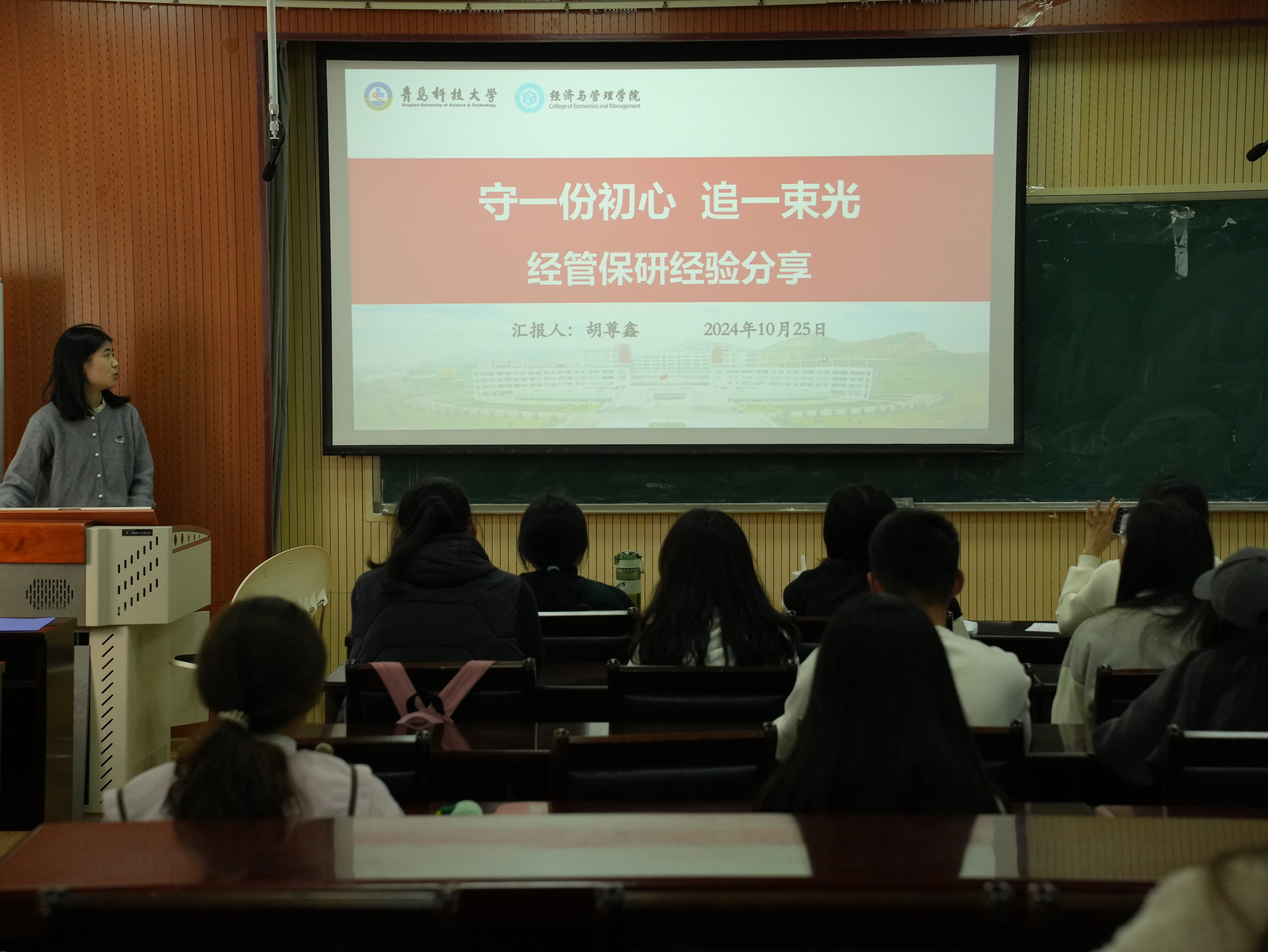 工业专业的李子超以自己对工业工程的深刻理解,为同学们打开了专业知识的新视野,强调特别是要提前了解保研政策、明确保研目标院校及专业、制定科学合理的复习计划,鼓励同学们勇敢追梦。物流专业的于婉婷详细地为同学们解读了本专业的发展方向,解答了对于有目标保研的同学需要做的准备工作。国贸专业的顾茗月分享了保研前期规划、预推免面试心得以及竞赛宝贵经验,为同学们说明了申请的注意事项,讲明夏令营和预推免的区别,解决了学生们的相关困惑。