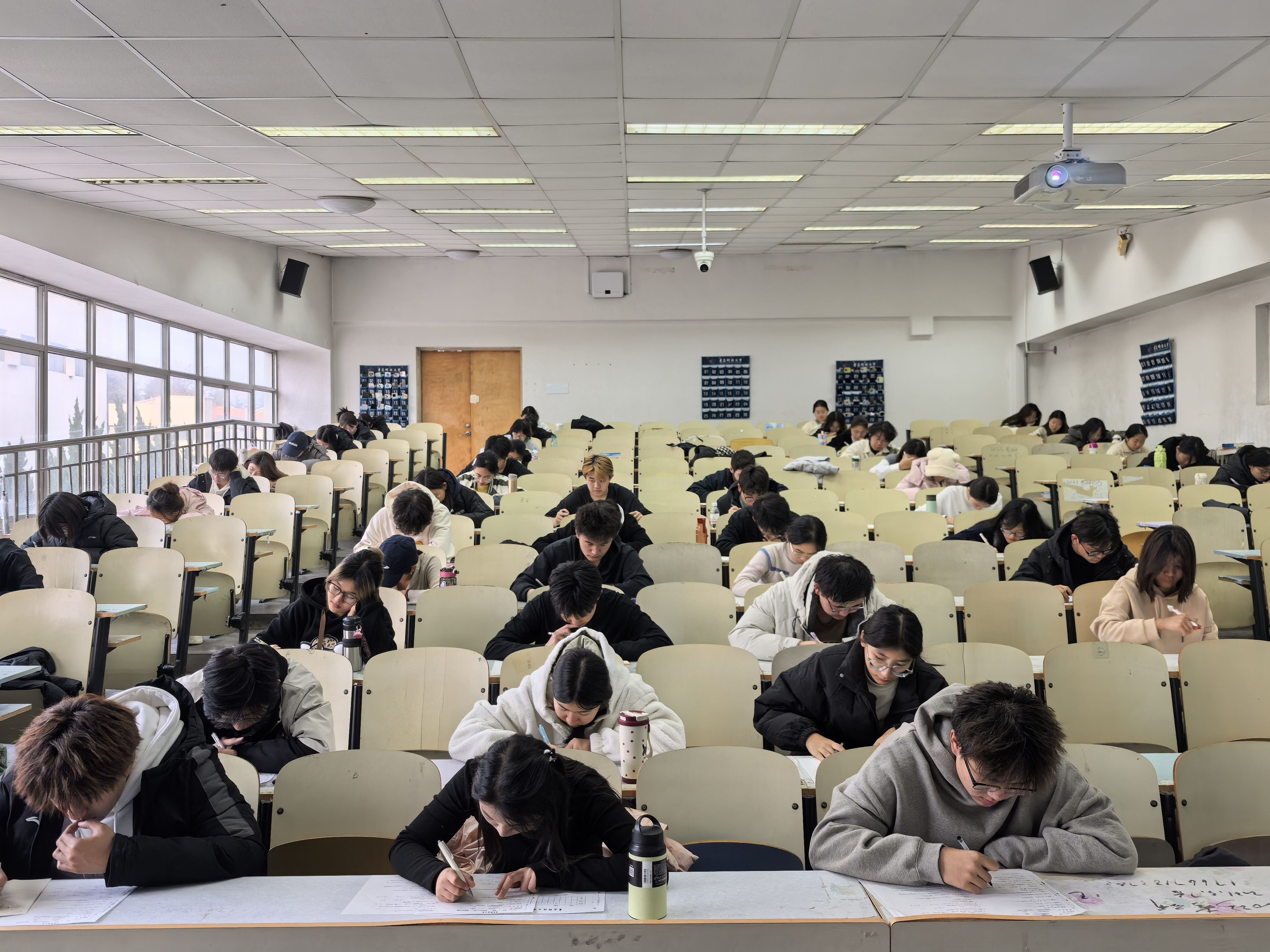 考前准备阶段,监考人员有条不紊地引导考生就座,辅导员严肃告知学生考场纪律、以及有关作弊行为的相关处理规定,并监督考生们将手机等与考试无关的物品放置到指定位置,为考生们创造一个公平、公正、有序的考试环境。