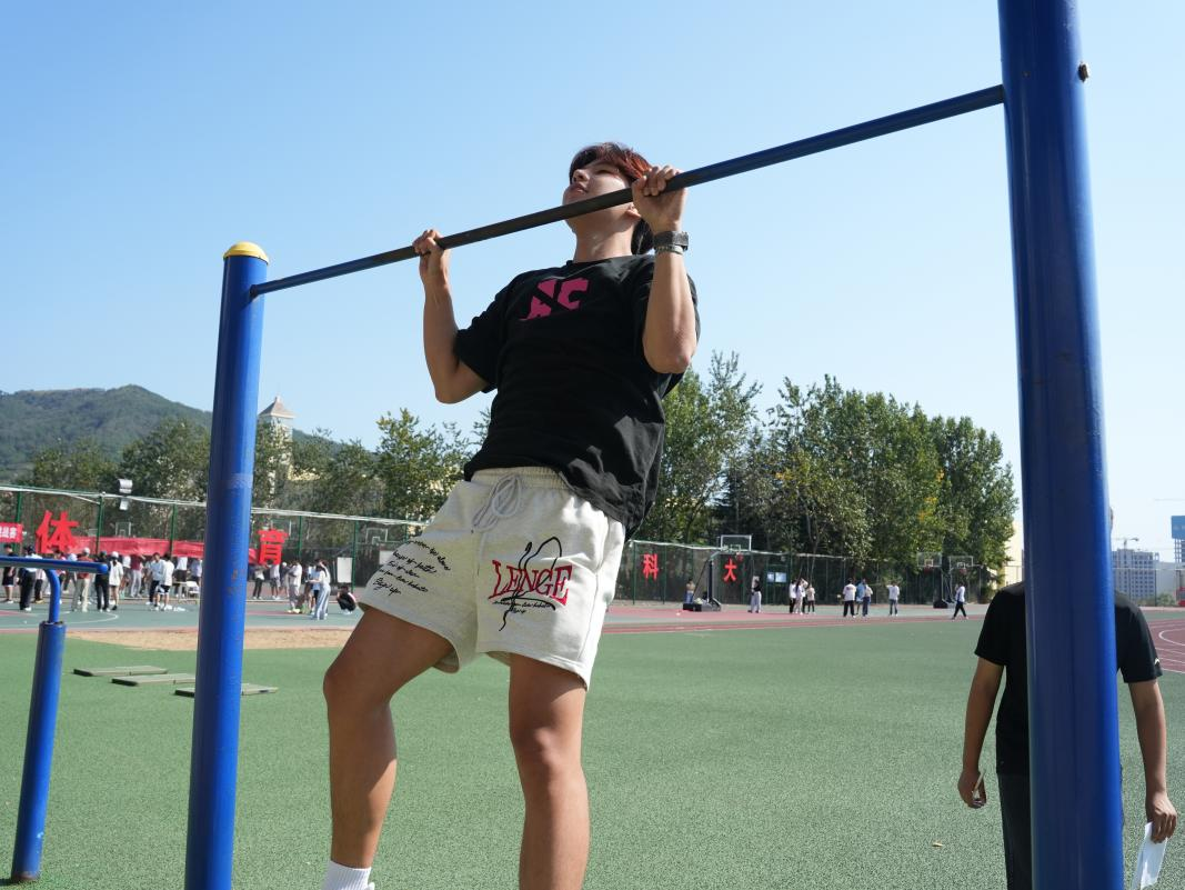 “青春力量”环节包括仰卧起坐和引体向上两个项目。参赛选手在各自区域就位后,随着哨声响起,他们咬紧牙关,奋力向上,一次次的仰卧与牵引,一次次的汗水与坚持,都是对自我的不断突破,都是对日常训练成果的最好反馈,是经管学子顽强拼搏,自强不息精神的最好诠释。