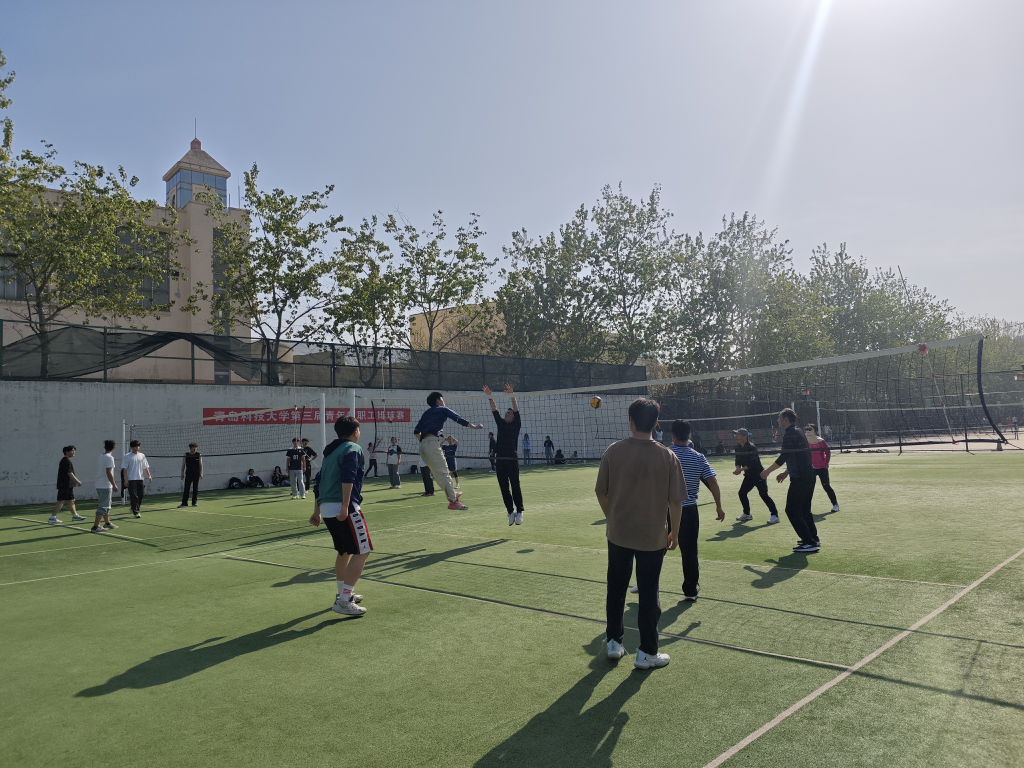 分工会在排球场举办了一场别开生面的师生排球友谊赛。本次比赛吸引了众多师生踊跃参与,赛场上激情四溢,场下欢呼声此起彼伏,充分展现了学院师生团结协作、奋勇拼搏的精神风貌。
