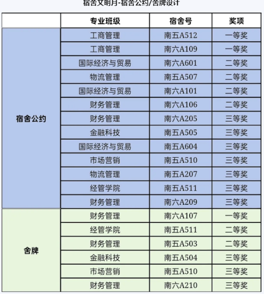 学院领导、教师定期进行对学院宿舍文明建设进行抽查,形成卫生抽查台账,督促学生积极开展文明宿舍、宿舍建设标杆点位建设,并取得了一定的成效。在“文明同行,寓见美好”2025“经”治宿舍建设标杆评选中,各宿舍积极申报,目前新生宿舍已有20间宿舍进行申报,部分专业申报率达100%,充分展现我院育人成效,上好了新生文明宿舍建设的第一课。