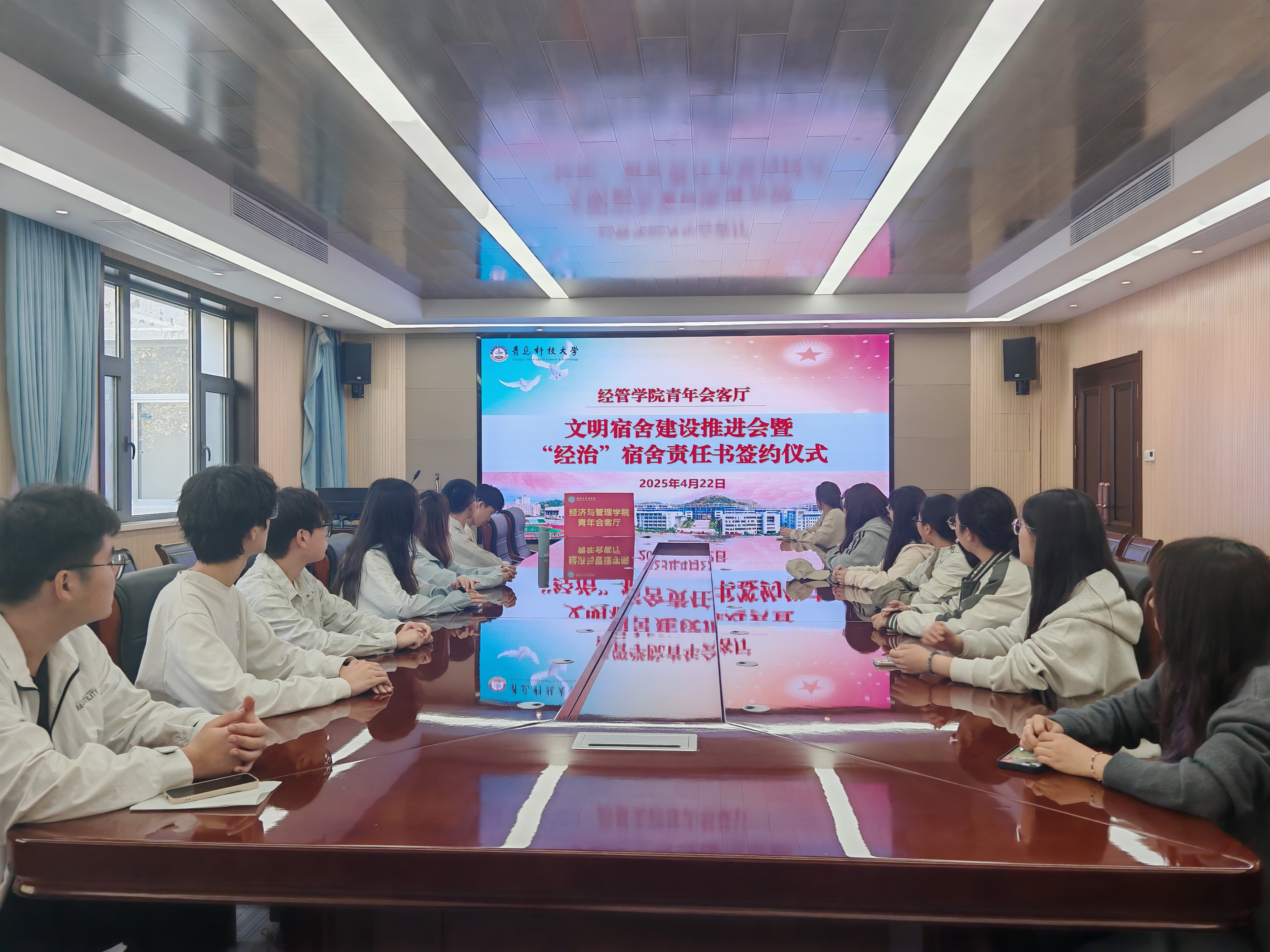 依托青年会客厅,于2025年4月22日下午在经管楼313举办文明宿舍建设推进会暨“经”治宿舍责任书签约仪式。本次活动邀请了各申报宿舍舍长与学生会部分负责人参加,共同为打造文明宿舍出谋划策、携手共进。