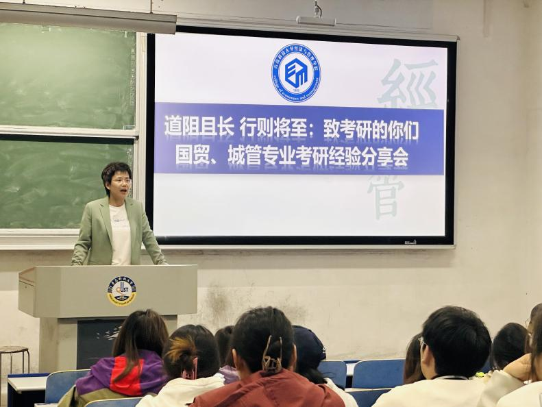 2025年4月28日,为深入贯彻落实立德树人根本任务,充分发挥优秀学子的示范引领作用,国际贸易与城市管理专业联合组织考研经验分享会于18:30在弘毅楼E区101圆满举行。李赞、刘心茹、汪一然、杨婧、张双圆五位优秀学子结合自身考研历程,为同学们带来了一场干货十足的考研经验分享盛宴。