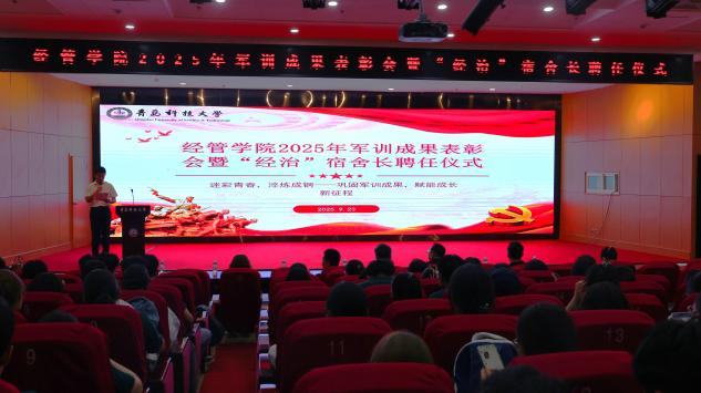 在第三报告厅举行2025年军训成果表彰会暨“经治”宿舍长聘任仪式。成人直播平台