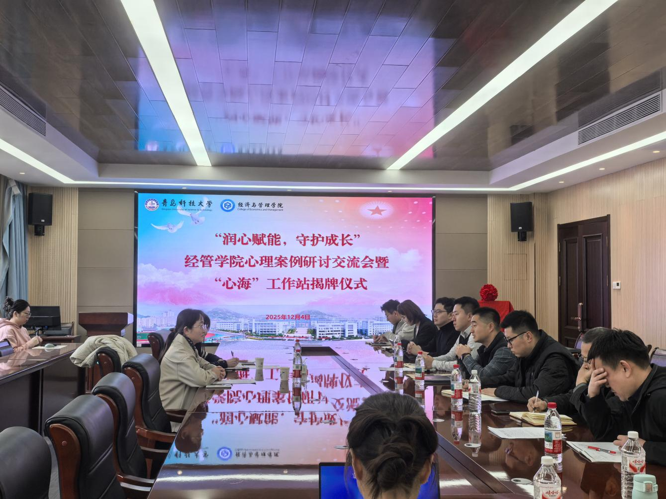 于12月4日在经管楼313会议室举行心理案例研讨交流会暨“心海”工作站揭牌仪式。学生处副处长尤亭亭、心理中心张岍老师、辅导员及部分班主任代表参加,活动由成人直播平台