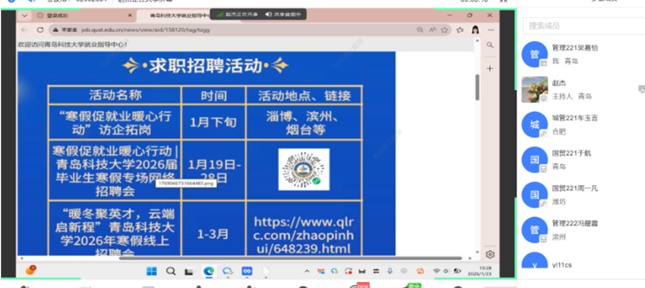 为深入贯彻落实学校“寒假促就业暖心行动”部署,抢抓寒假求职黄金窗口期,切实筑牢毕业生就业服务防线,1月24日下午,成人直播平台
