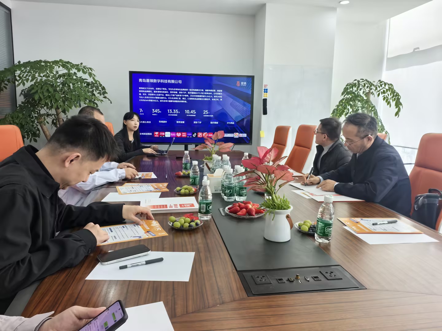 座谈会上,企业负责人对学院到访表示欢迎,介绍了喜领集团的发展历程、业务布局及岗位需求。作为大健康行业全域孵化运营商,企业2025年销售额达13.35亿元,目前亟需电商运营、供应链管理等经管类人才,期待与学院建立长期合作。李勋来对校友企业发展成果表示赞赏,指出此次调研是落实“访企拓岗”专项行动的重要举措,介绍了学院学科特色与人才培养成果,并结合学院培养方向与企业需求,邀请企业专家进校园参与教学实践。