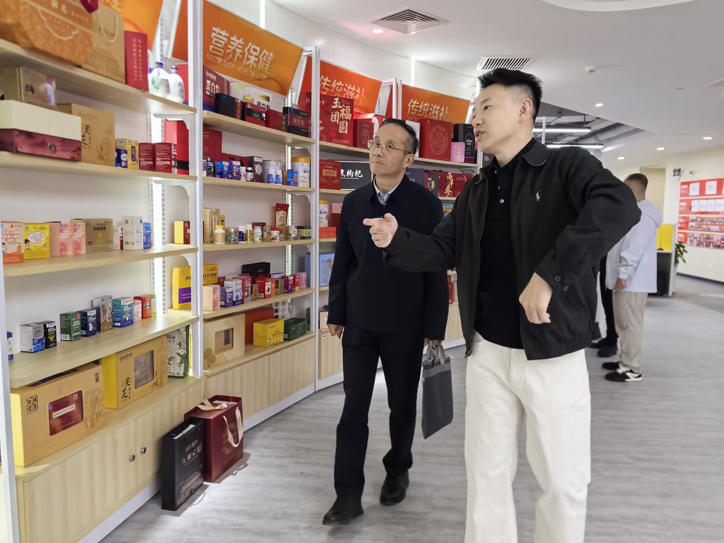 在总经理李国杨的陪同下,学院一行参观了智能仓储中心、品牌运营中心等核心区域,详细了解企业仓储管理、电商运营及产品孵化模式,直观认识企业发展规模与产业布局,加深了对大健康电商行业需求的理解。
