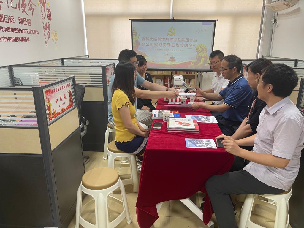 应我院工业工程系和物流管理系邀请,2021年6月21日下午,百胜中国青岛公司主管一行7人造访我院,我院党委书记李德成、院长李勋来、党委副书记兼副院长刘跃宁、工业工程系主任于龙振、物流管理系主任索琪热情招待了公司一行。