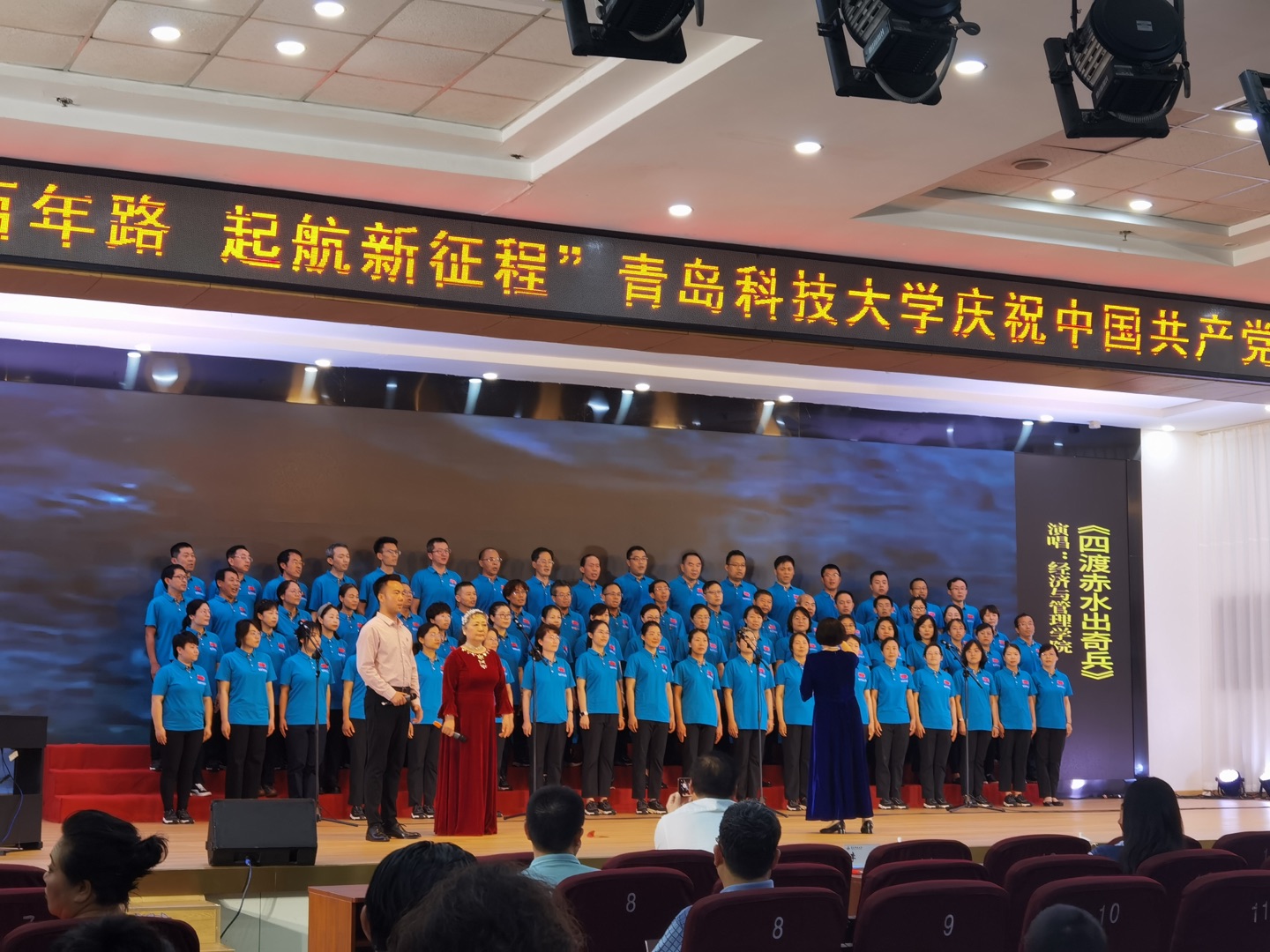 庆祝中国共产党成立100周年教职工合唱展演,我院教师合唱团以慷慨激昂的精神状态演唱《四渡赤水出奇兵》,唱出了红军长征途中经历的艰难险阻和军民的鱼水情深。