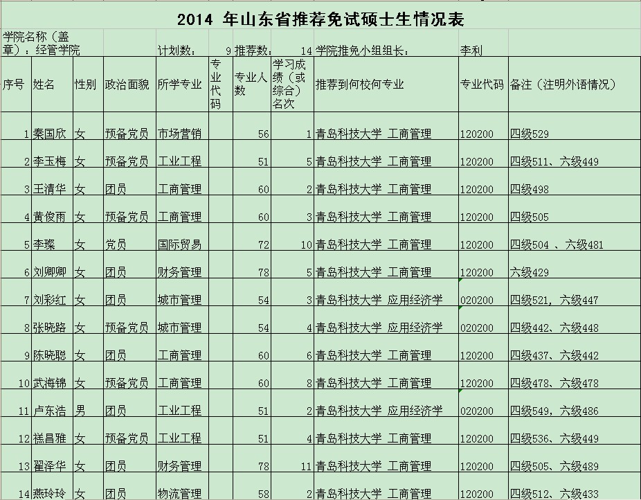 成人直播平台 成人直播平台 2014年拟推荐免试硕士研究生公示材料