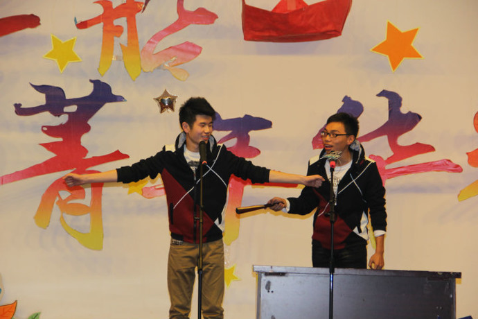 本场晚会共分为三个篇章:童年、青春、梦。整场晚会以学生成长经历为主线展开。创意独特的《手影舞》和霸气的《舞魂》瞬间点燃了全场观众的热情。随后的乐器连奏、小品、歌舞、相声、魔术等精彩的节目也都为观众呈现了一场视听盛宴。美妙动听的西洋、民乐合奏《童年》仿佛带领我们回到了小时候那段快乐的日子。幽默新颖的小品《梁祝》颠覆了经典,现场乐成一片。青春洋溢的说唱B-BOX节奏感十足,让观众们不禁感叹“青春,真好!”。大艺团爵士舞《没有明天》精彩飞扬、毫不逊色。诙谐幽默的相声《妹子,我们做朋友吧》让笑声充满整个会场。分团委老师演绎的小品《首届“科大橡胶杯”辩论赛》展现了老师们独特的风采,同学们连连为老师们叫好,台下掌声、笑声不断。更有203乐队带来精彩表演high翻全场,将晚会的气氛再次推向高潮。晚会中穿插了颁奖环节,由学院领导现场为优秀志愿者、院徽设计获奖者亲自颁奖并授予证书。晚会开放人人互动平台,实现了台上台下的即时互动。整场3000多条的互动留言更让同学们感受到场内气氛的热烈。最后,这场让人意犹未尽的晚会在歌曲《最美的星光》中画上完美句号,全场演员观众纷纷上台合影留念,一声咔嚓的快门声将一张张笑脸定格成永恒。