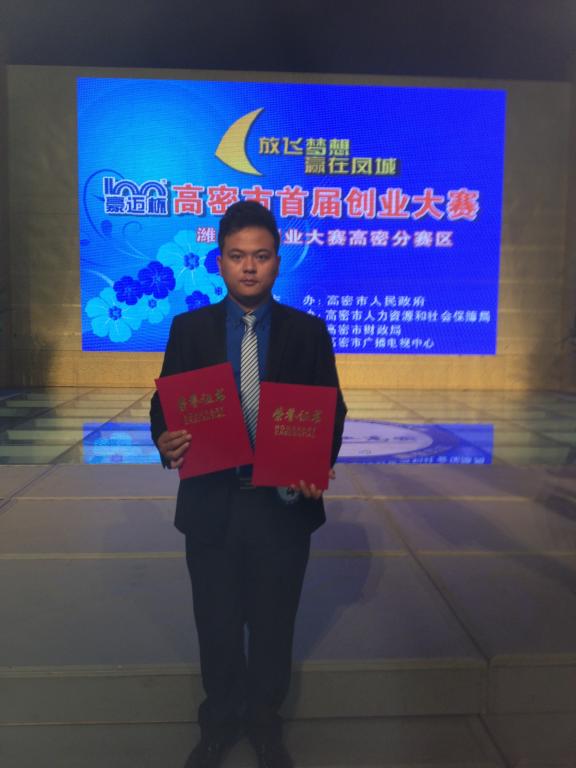 近日,“放飞梦想,赢在凤城” “豪迈”杯高密市首届创业大赛决赛在市广电中心二楼演播大厅隆重举行。来自我校经管系国贸1272班学生杨周翔表现出色,最终获得创业项目组优秀奖,并荣获高密市优秀创业青年和高密市优秀创业项目两个奖誉称号。