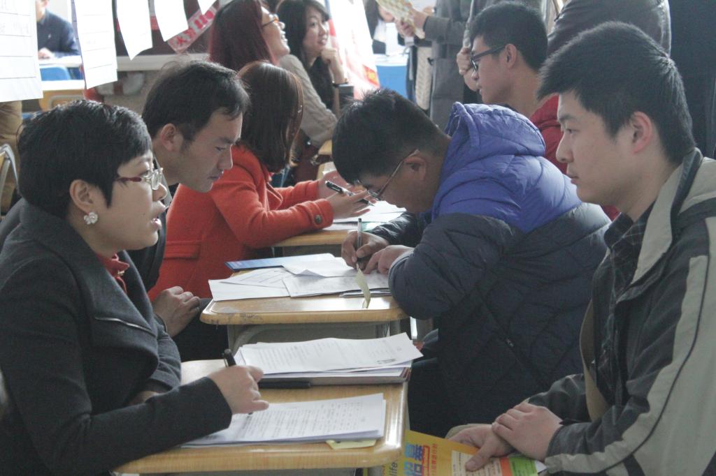 、外国语学院、体育学院“新常态新导向新希望”2015届毕业生供需见面会在崂山校区北苑三楼大厅举行,学生处及相关学院领导莅临招聘会现场指导工作。本次供需见面会共提供就业岗位3000余个。 在经济新常态下,今年的供需见面会较往年相比,有了不少变化。一是,参加见面会的中小企业的比重有较大提升。今年招聘会吸引了来自北京、内蒙古、河北、青岛、烟台等地180余家企业,招聘需求涵盖了财务、国贸、物流、电子商务、英语、韩语等专业。其中,中小企业占据了多数。这是在政府“大众创业,万众创新”的倡导下,新兴企业活力明显增强的直接体现。二是,参会企业互联网化倾向明显。参会企业中,传统企业比重下降,新型电商企业明显增多,几乎所有的参会企业都有网络营销的岗位需求。这客观上也要求当代大学生进一步提高自身网络实用技能。三是,企业的福利待遇与岗位要求同时提高了。见面会现场,很多企业列出了带薪年假、出国旅游、生日礼品、结婚礼品、五险一金、舒适办公环境等福利,工资待遇较往年也有了提升,但同时,各单位对于应聘者也提出了更高的要求。有些企业要求毕业生必须从基层做起,有些企业对毕业生口语水平要求则更严格。